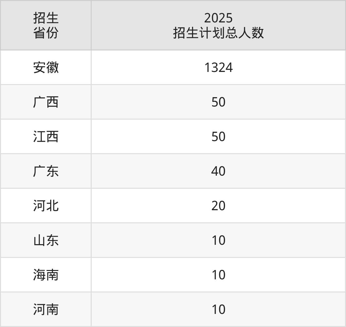 2025年淮北职业技术学院面向全国8个省市开展专科招生;招生专业共38个,招生人数共1514人。2025年在安徽省招生计划总人数是1324人,其中,淮北职业技术学院在安徽省招生人数最多的是旅游管理。淮北职业技术学院在各省具体招生人数情况如下表。