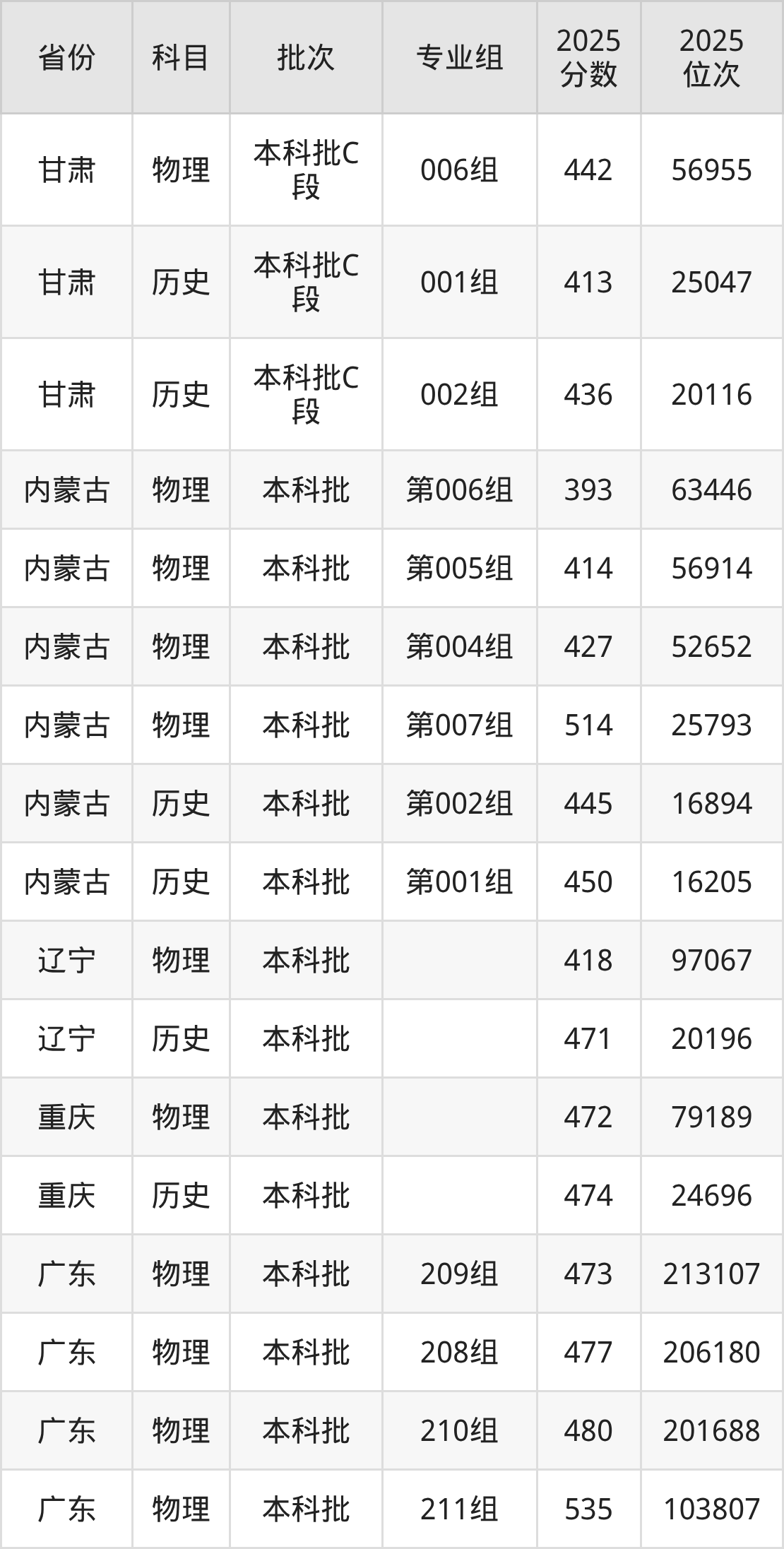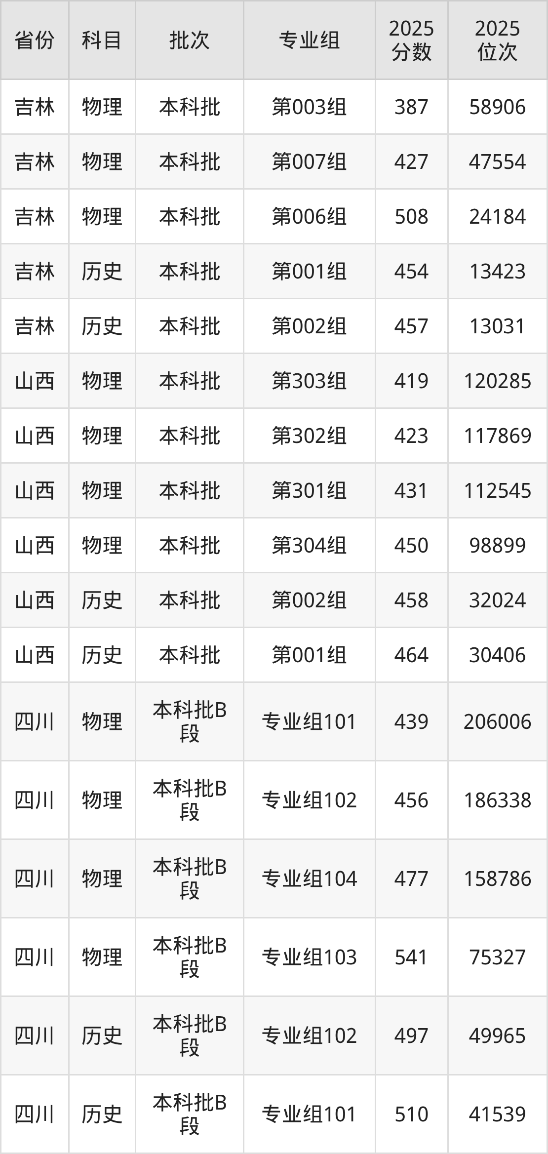 普通类本科物理类最低393分,本科历史类最低445分