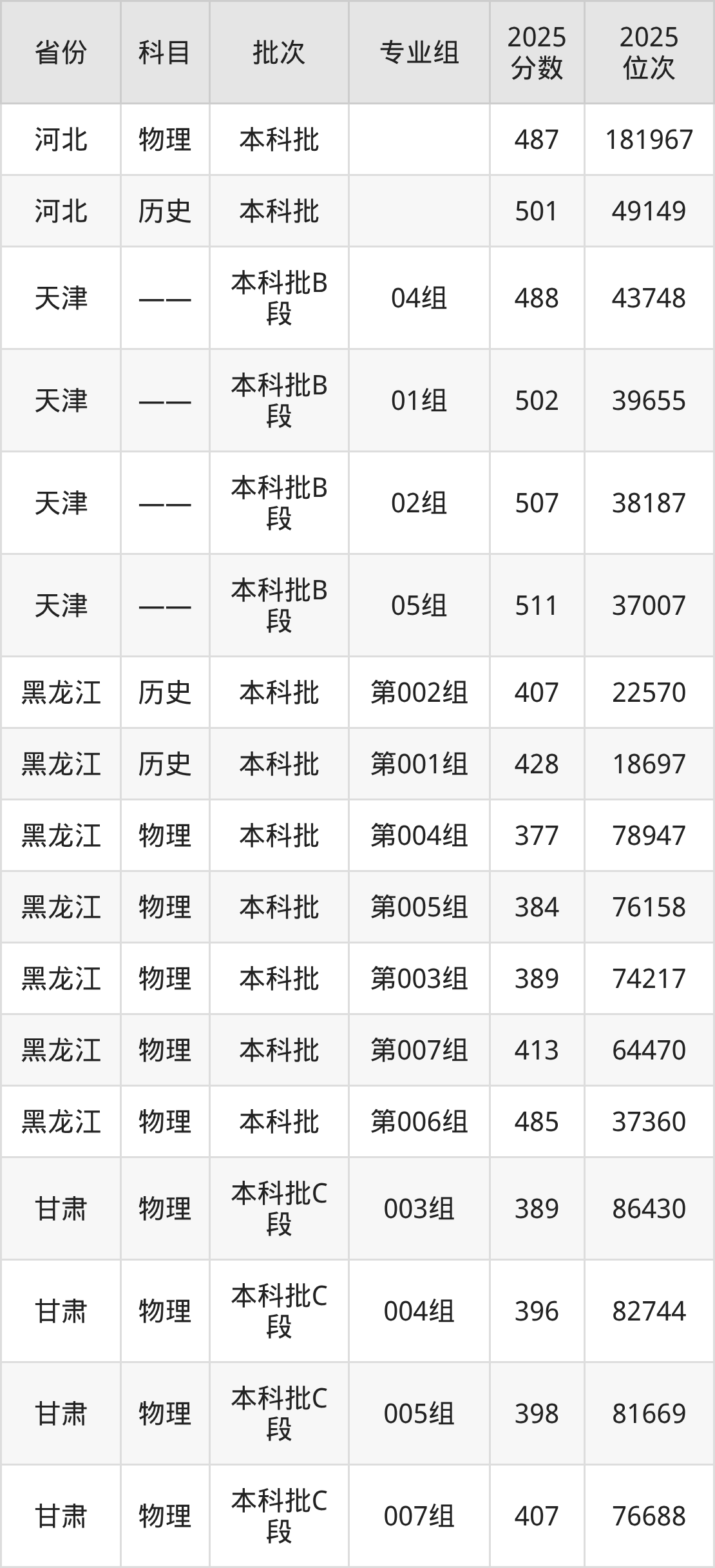 普通类本科物理类最低487分,本科历史类最低501分