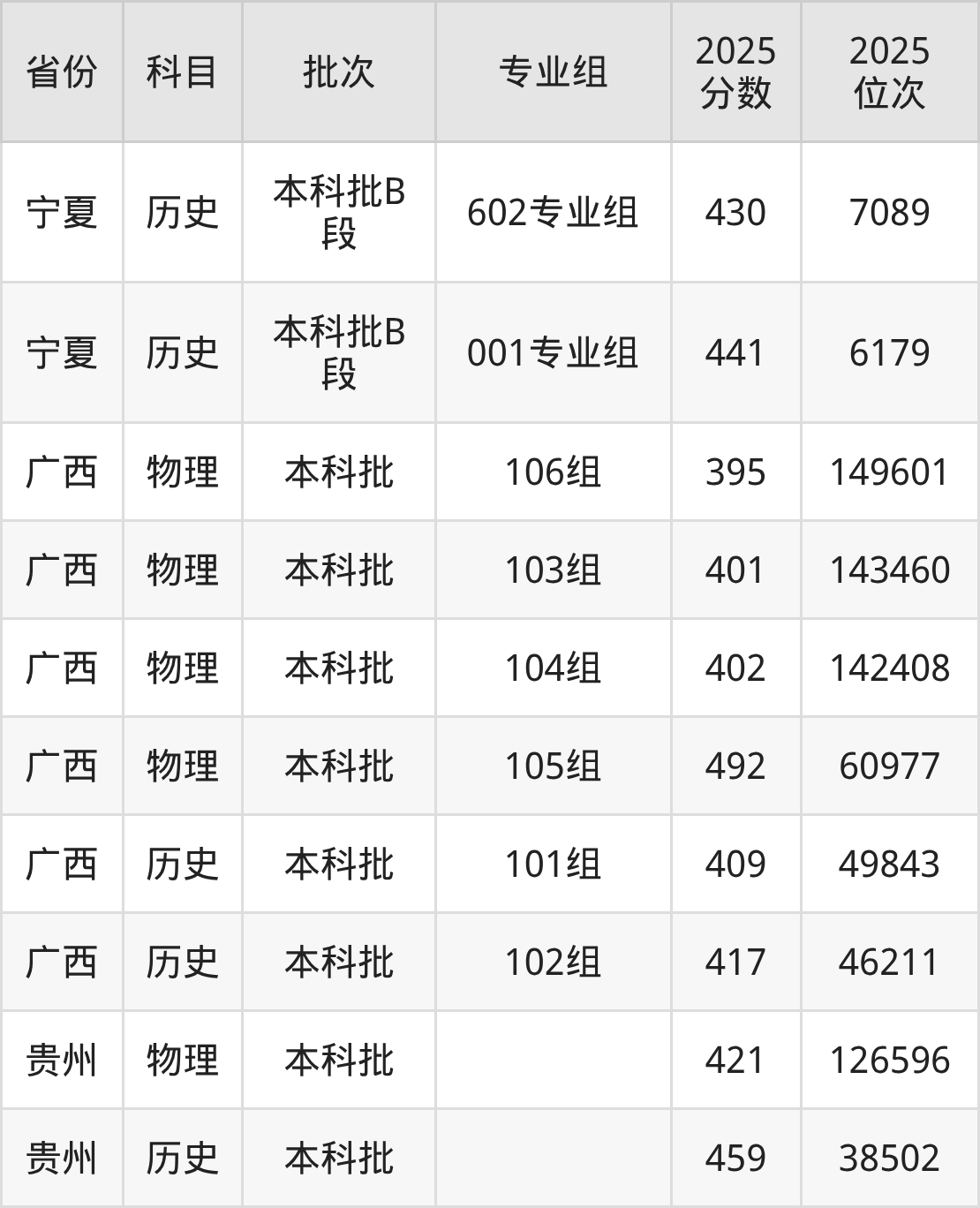 普通类本科物理类最低419分,本科历史类最低458分