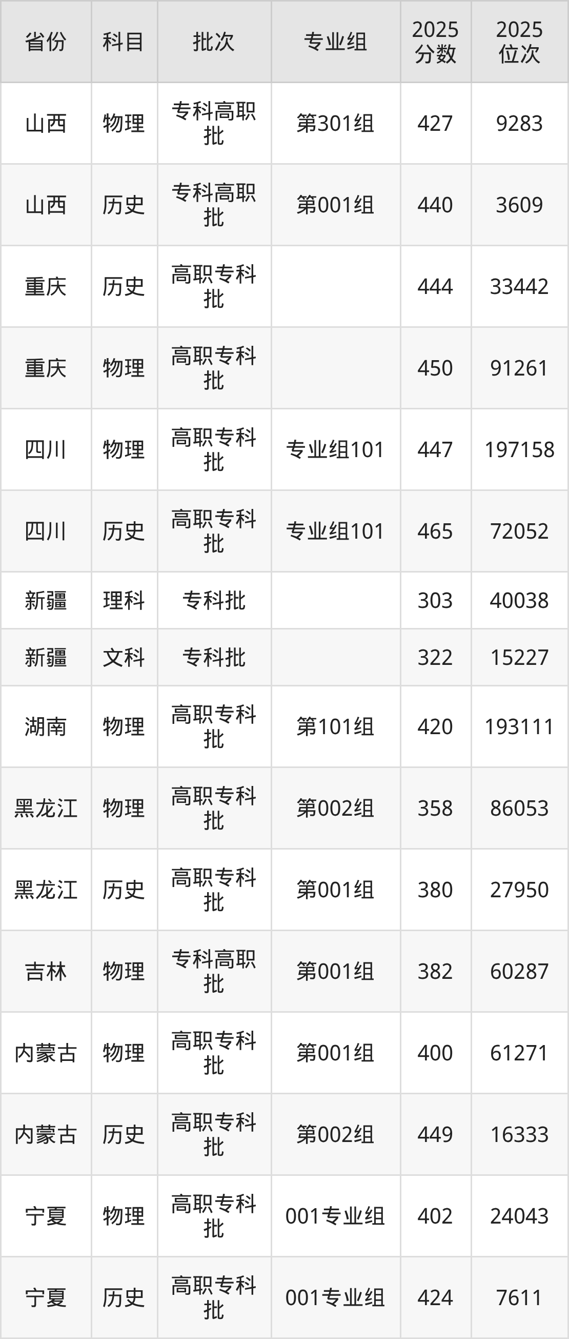 下面是2025年西安铁路职业技术学院全国录取分数线一览表,请查阅。