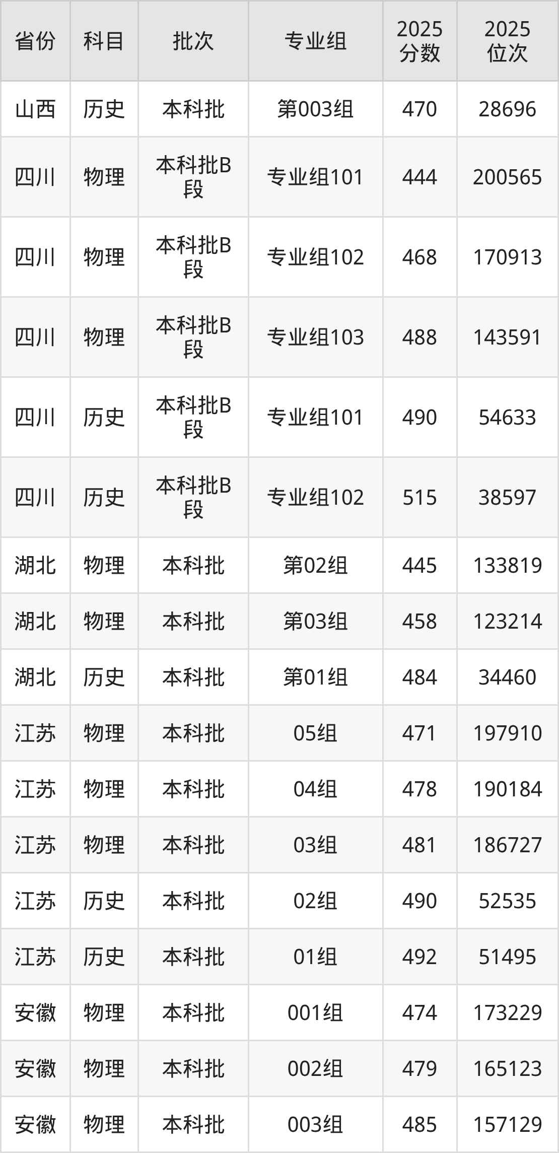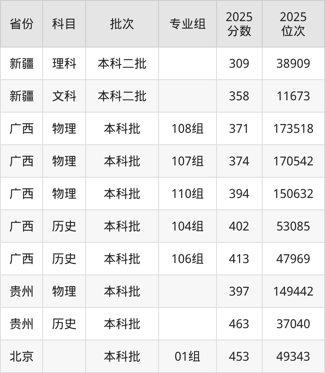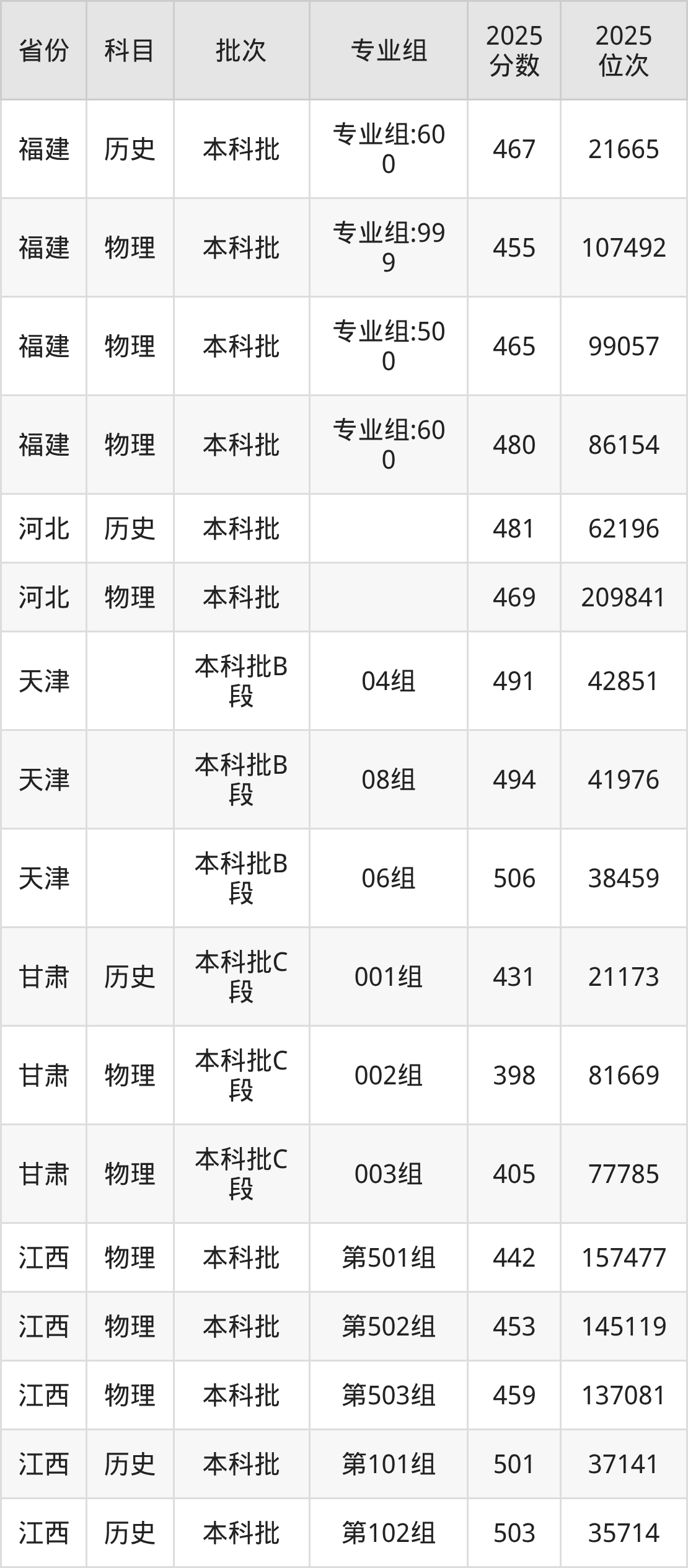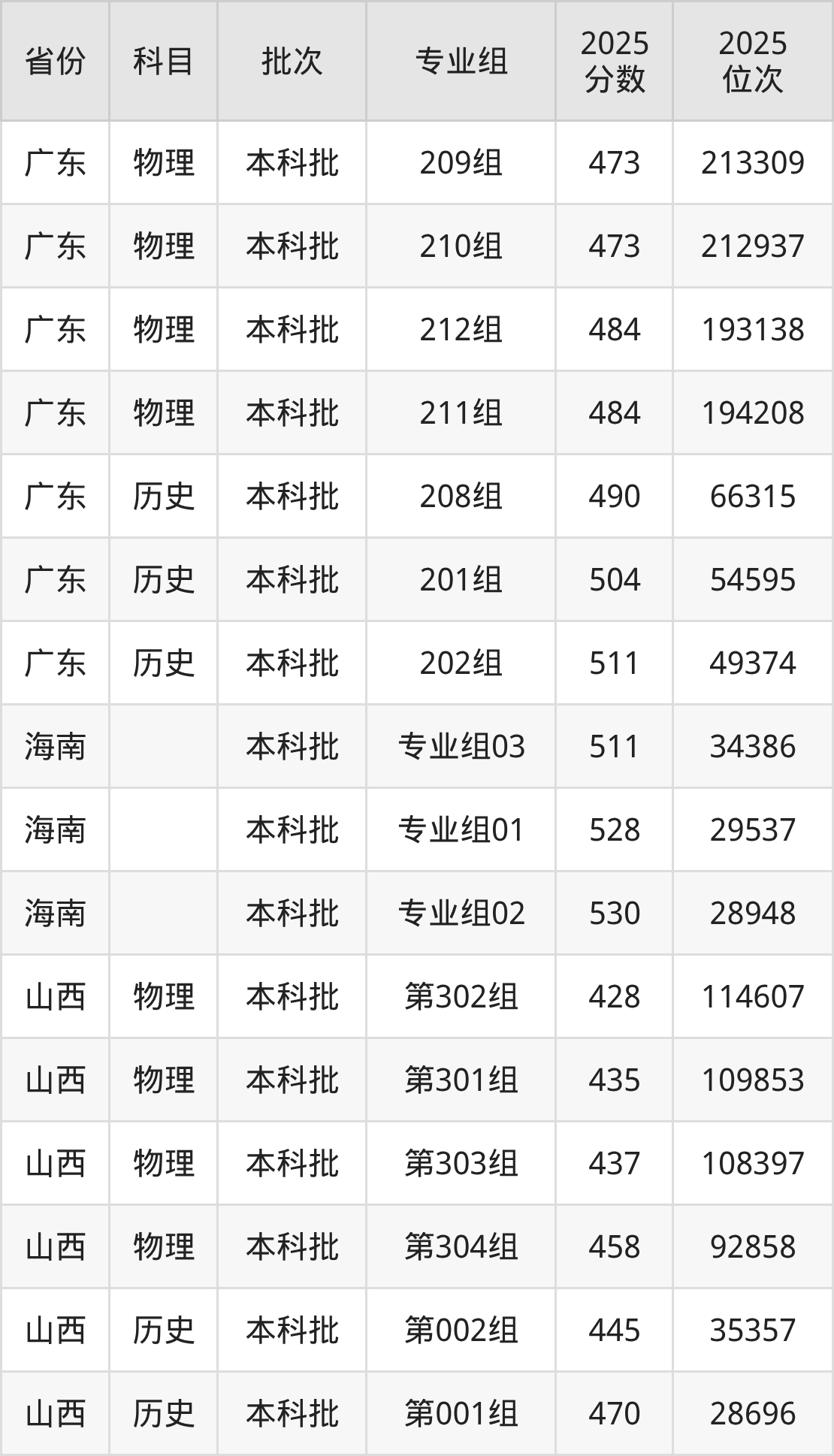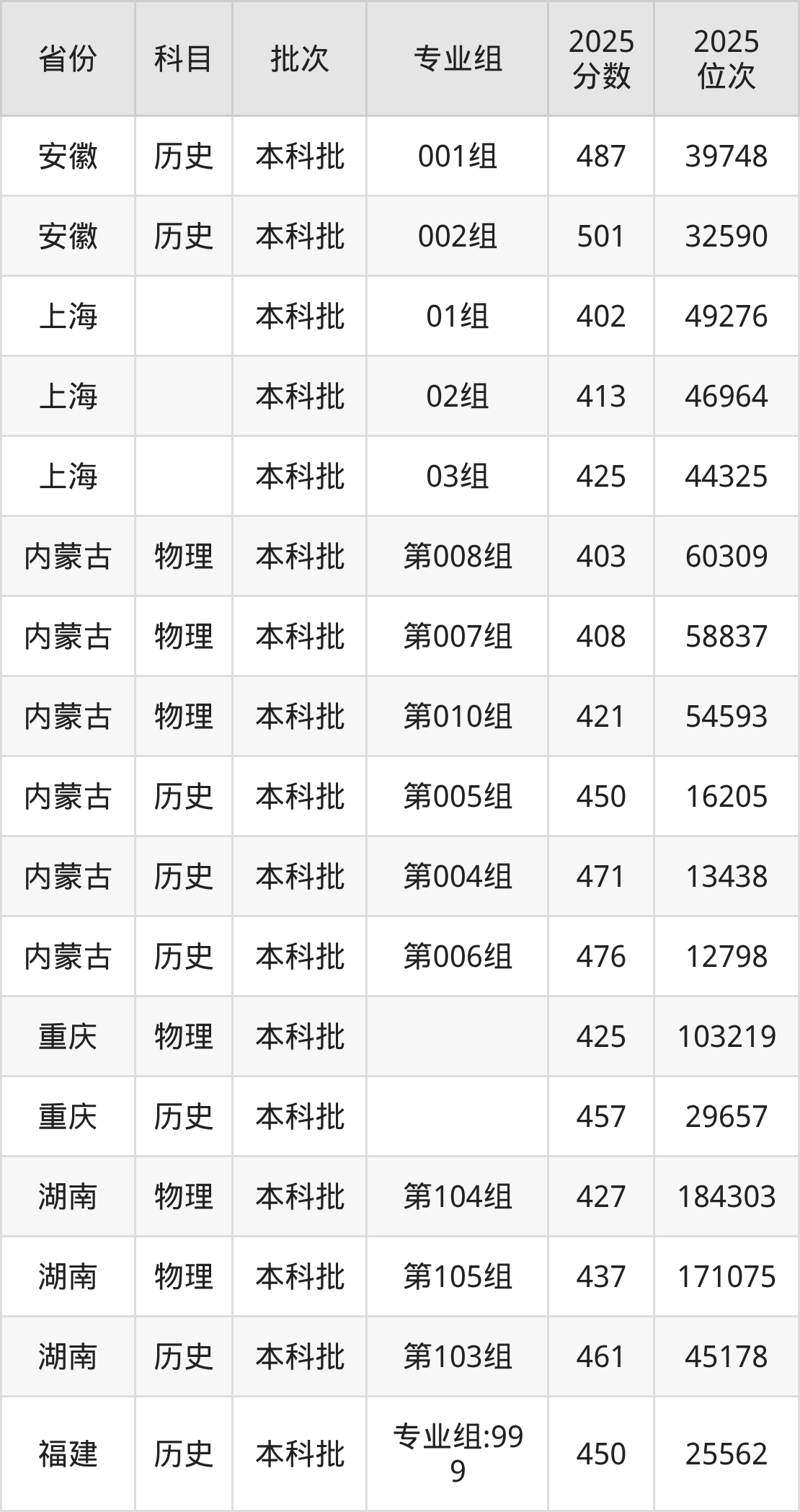 2025年投档录取最低分为425分,录取最低位次为103219名。