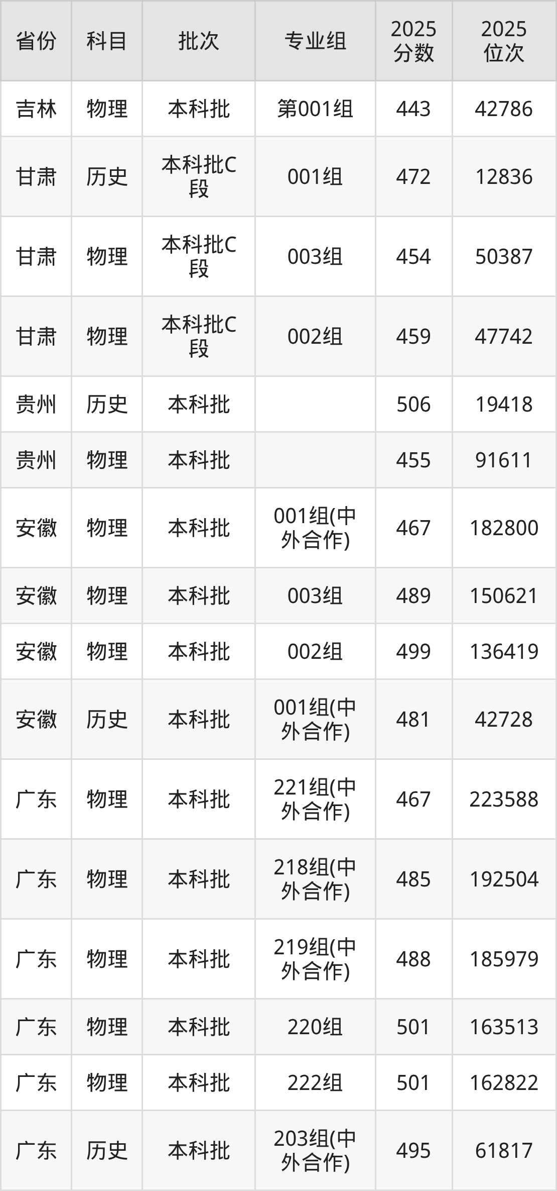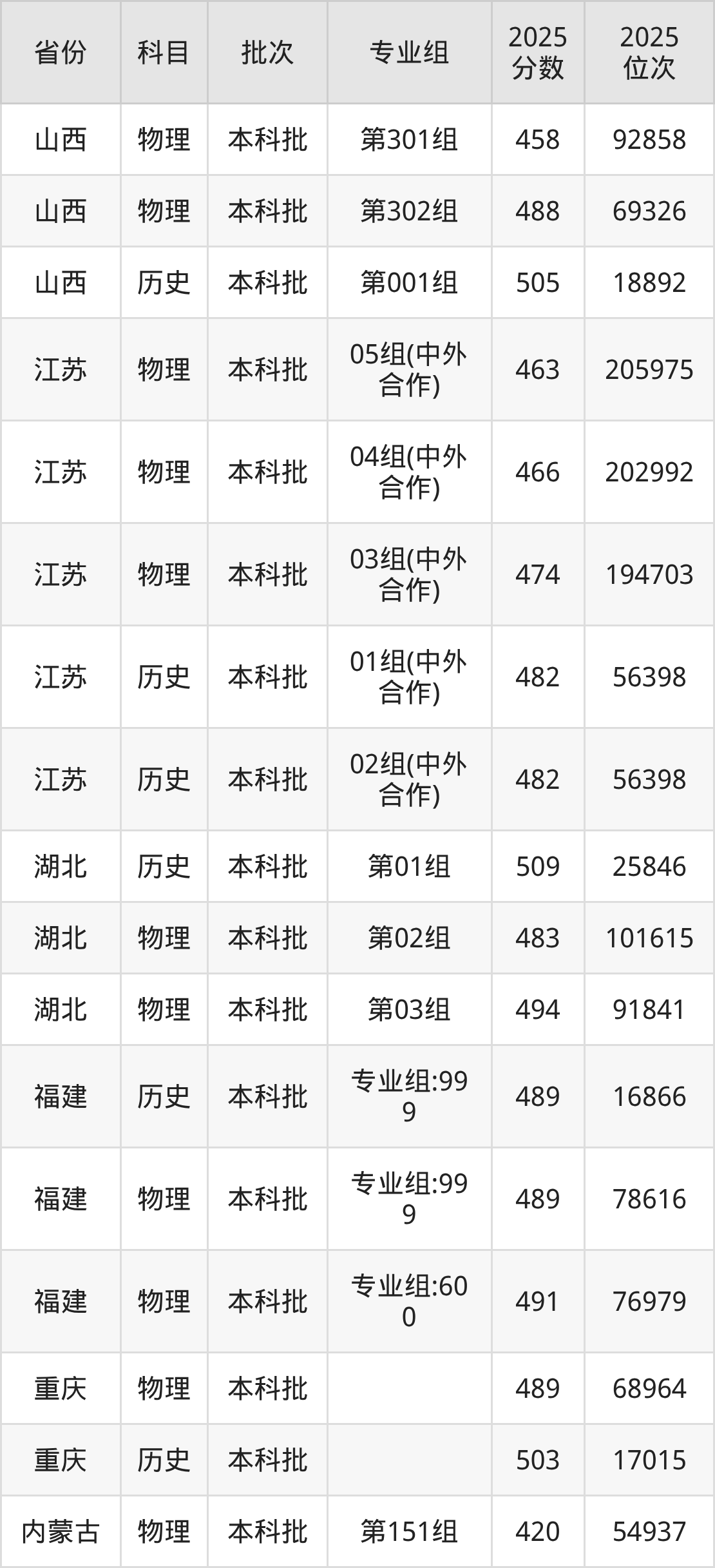 2025年在本科物理类进行招生,各专业组分数线详情如下: