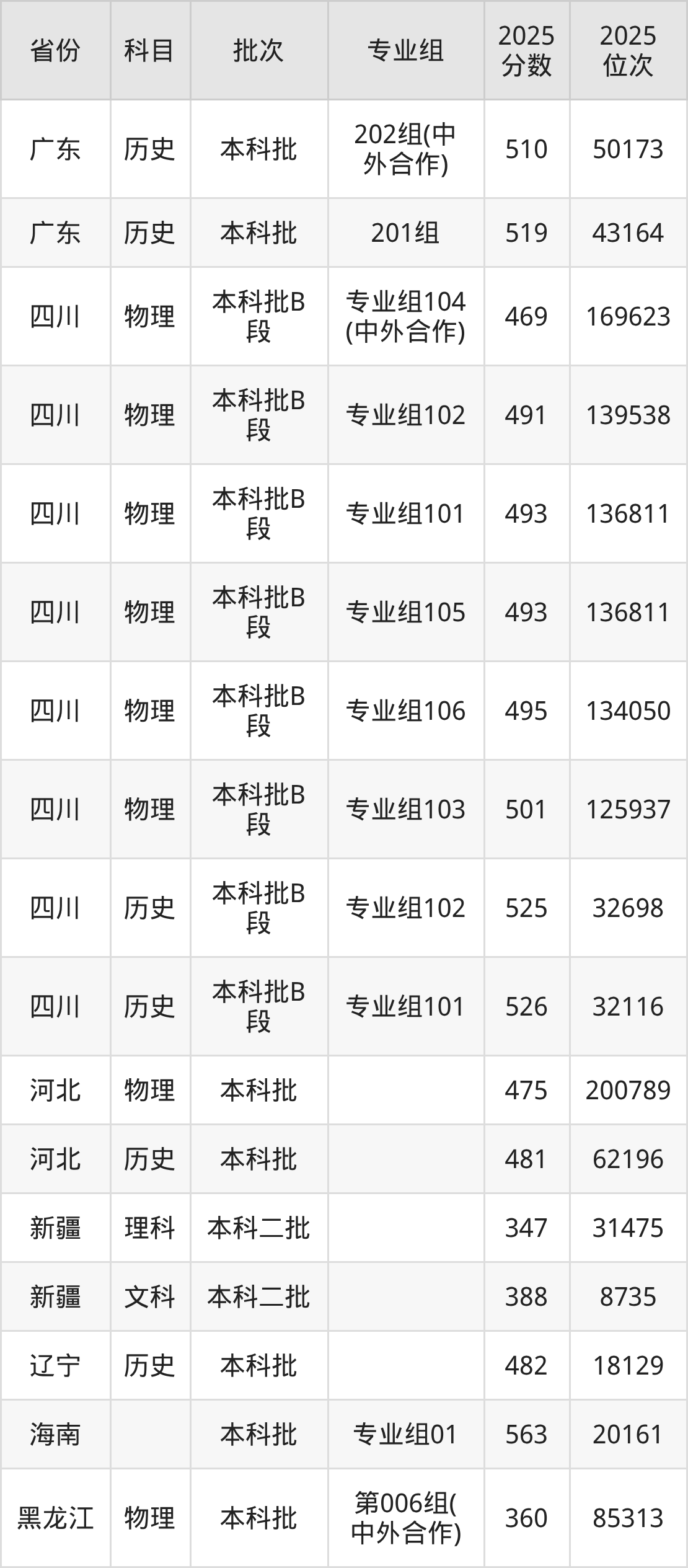 2025年投档录取最低分为506分,录取最低位次为19418名。