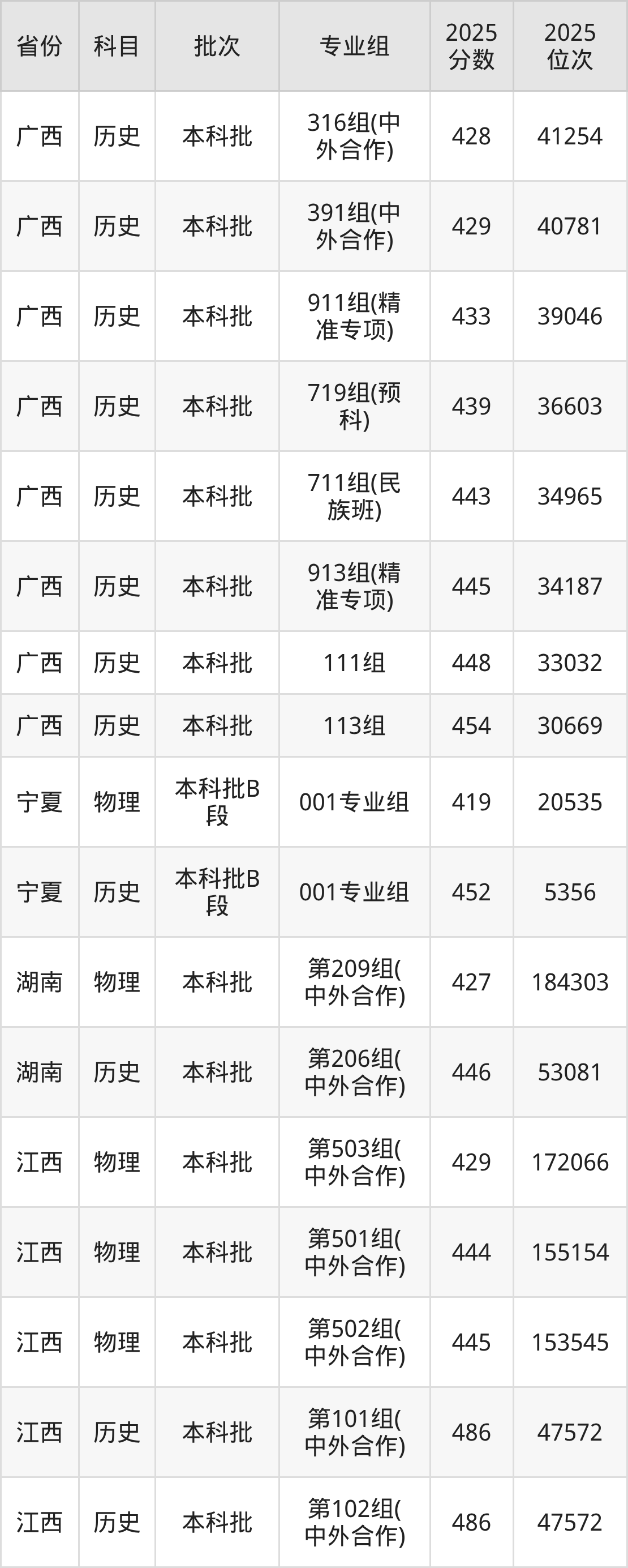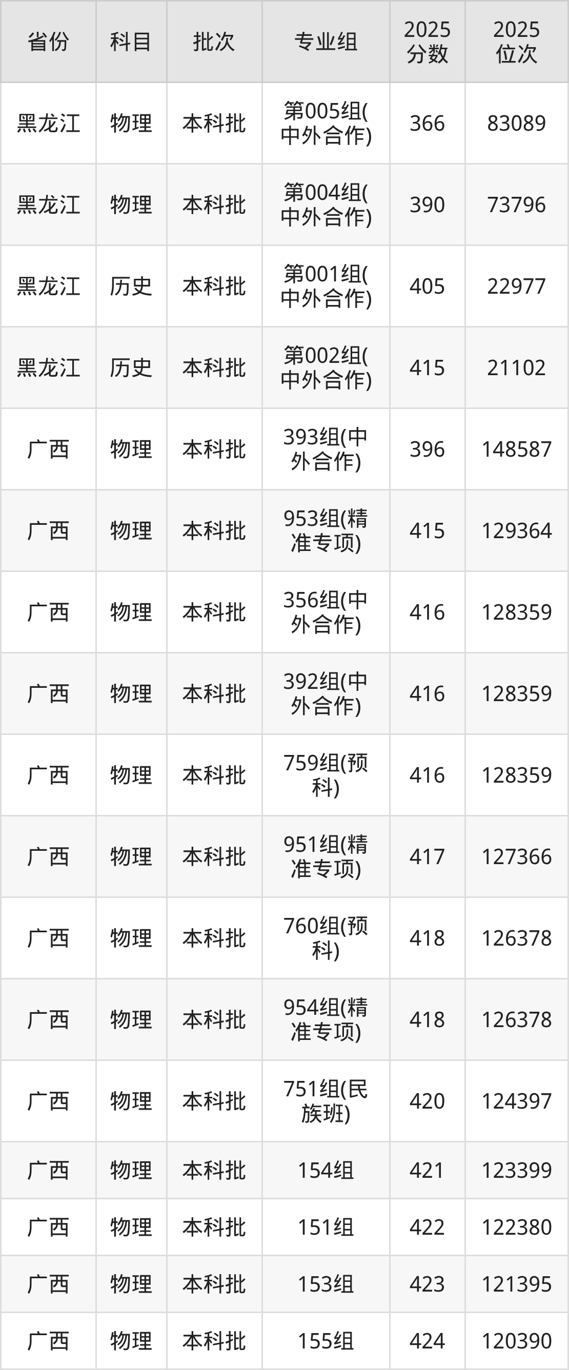 桂林旅游学院05组(中外合作办学):2025年投档录取最低分为463分,录取最低位次为205975名。