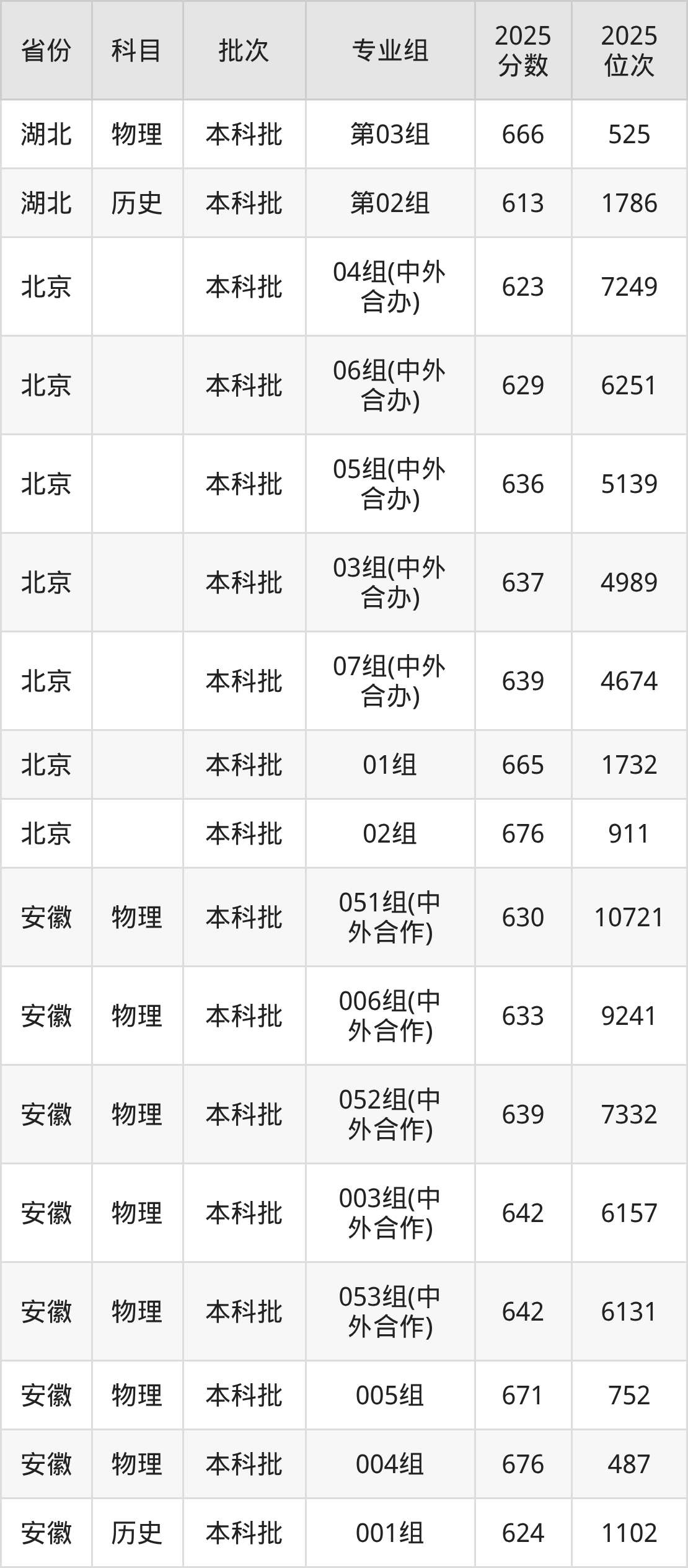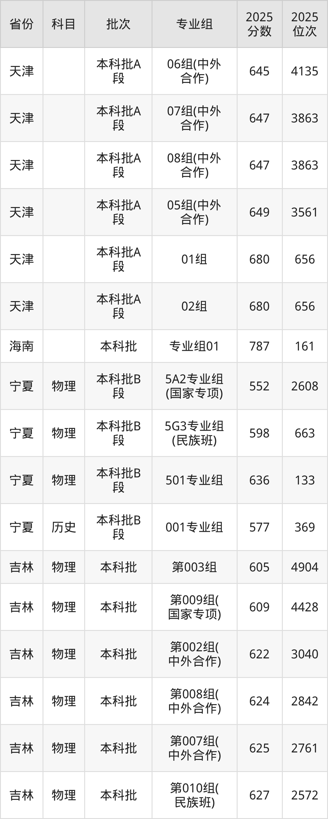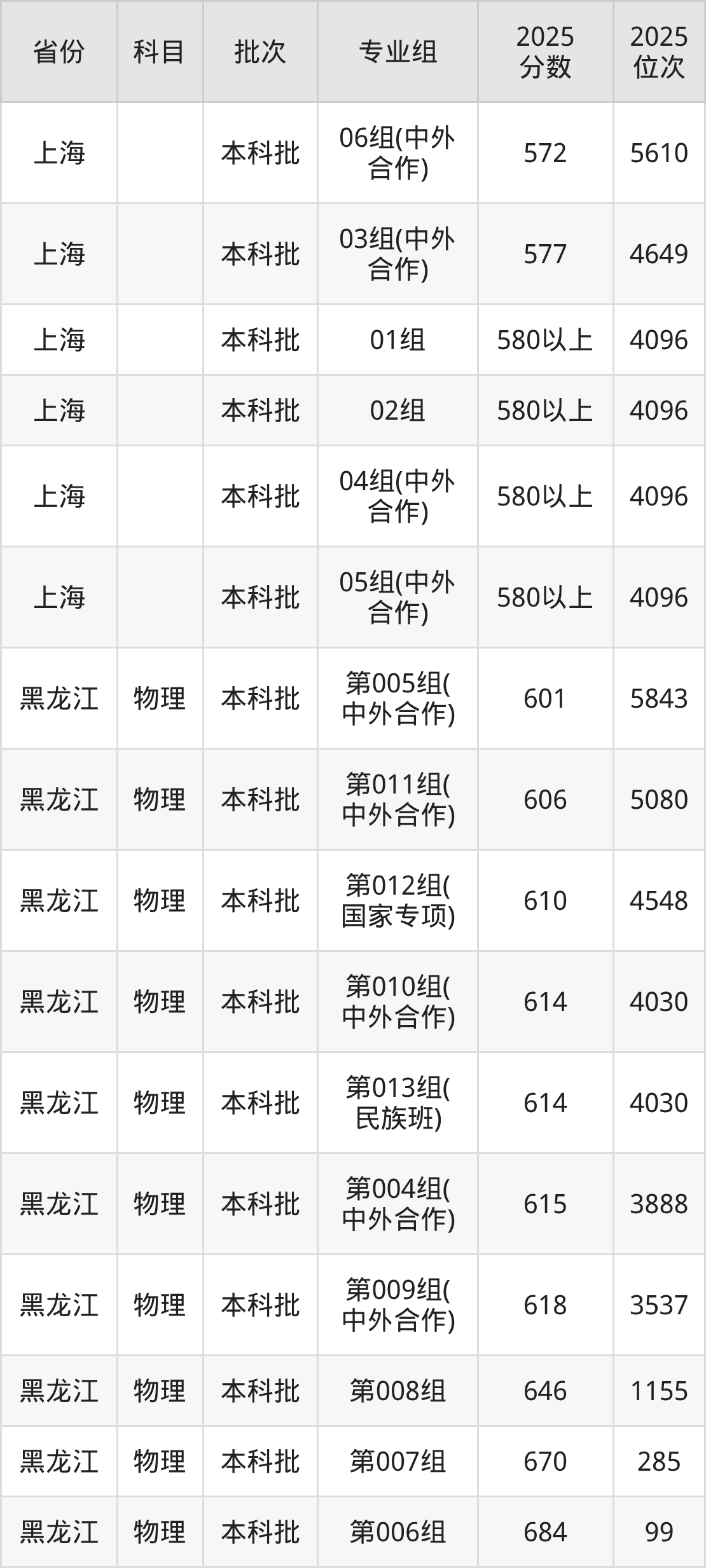 哈尔滨工业大学第010组(中外合作):2025年投档录取最低分为614分,录取最低位次为4030名。