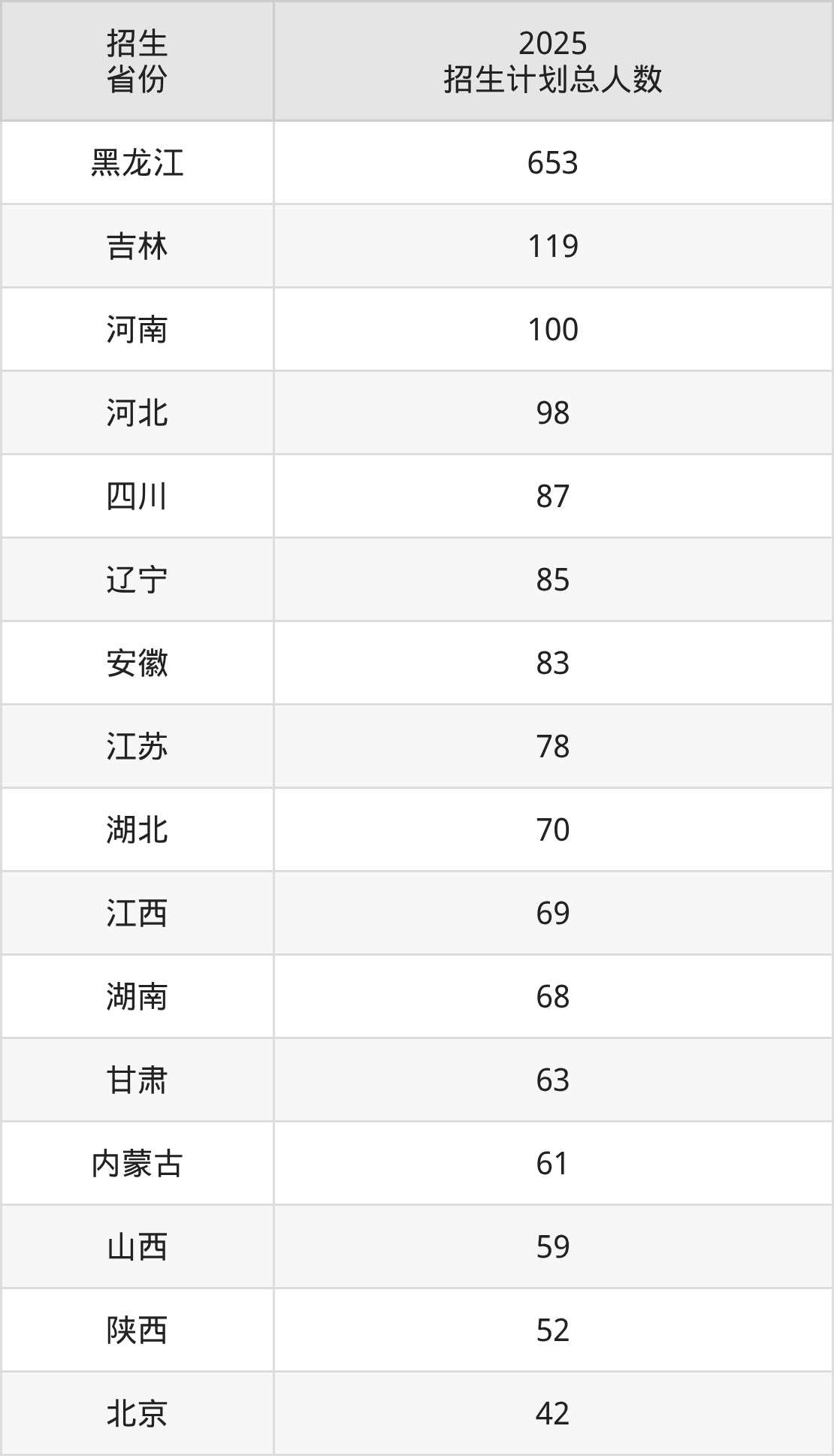 2025年哈尔滨工业大学面向全国28个省市开展本科招生;招生专业共9个,招生人数共2089人。2025年在黑龙江省招生计划总人数是653人,其中,哈尔滨工业大学在黑龙江省招生人数最多的是工科试验班。哈尔滨工业大学在各省具体招生人数情况如下表。