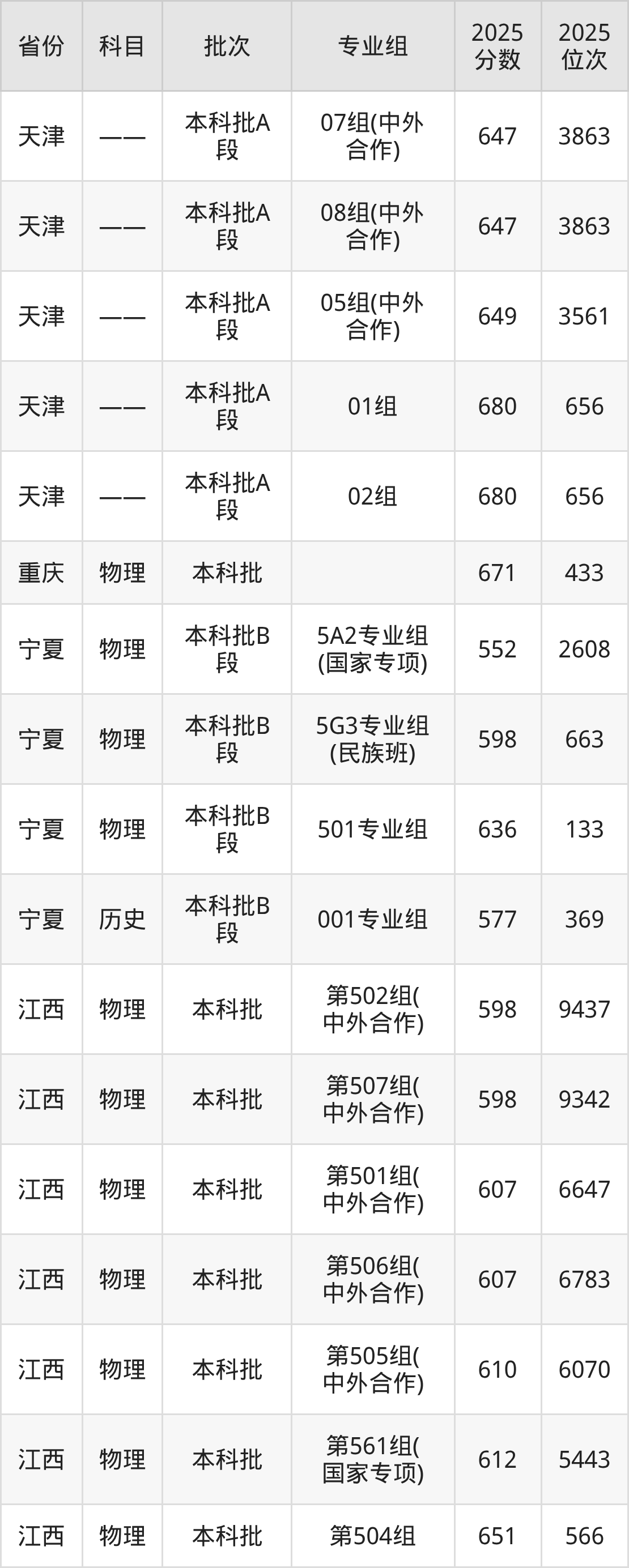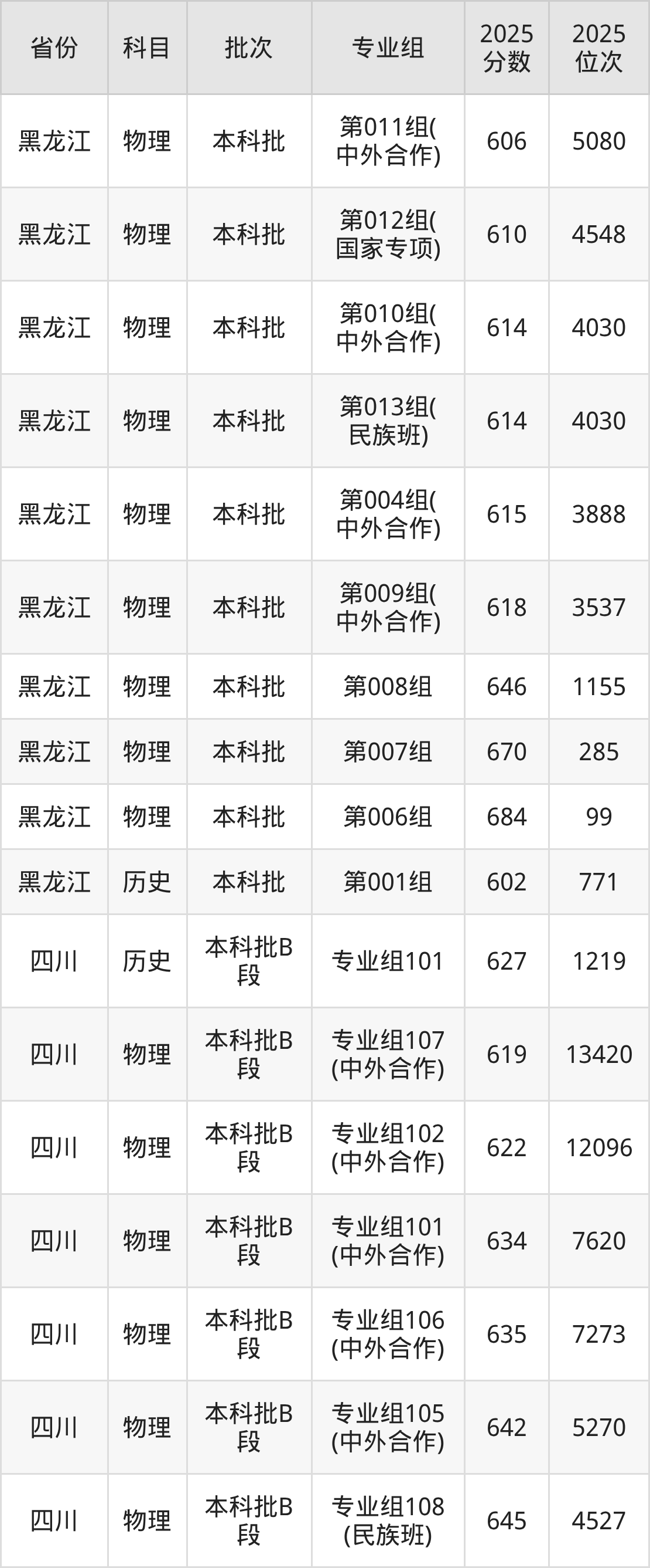 哈尔滨工业大学第501组(中外合作):2025年投档录取最低分为607分,录取最低位次为6647名。