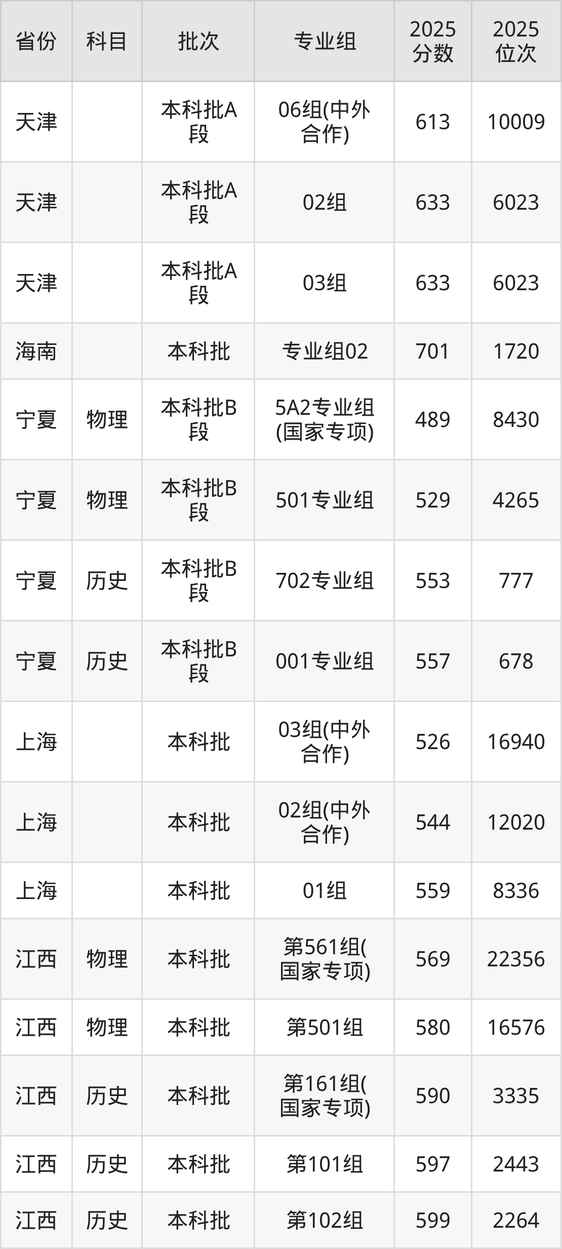 下面是2025年西南交通大学全国录取分数线一览表,请查阅。