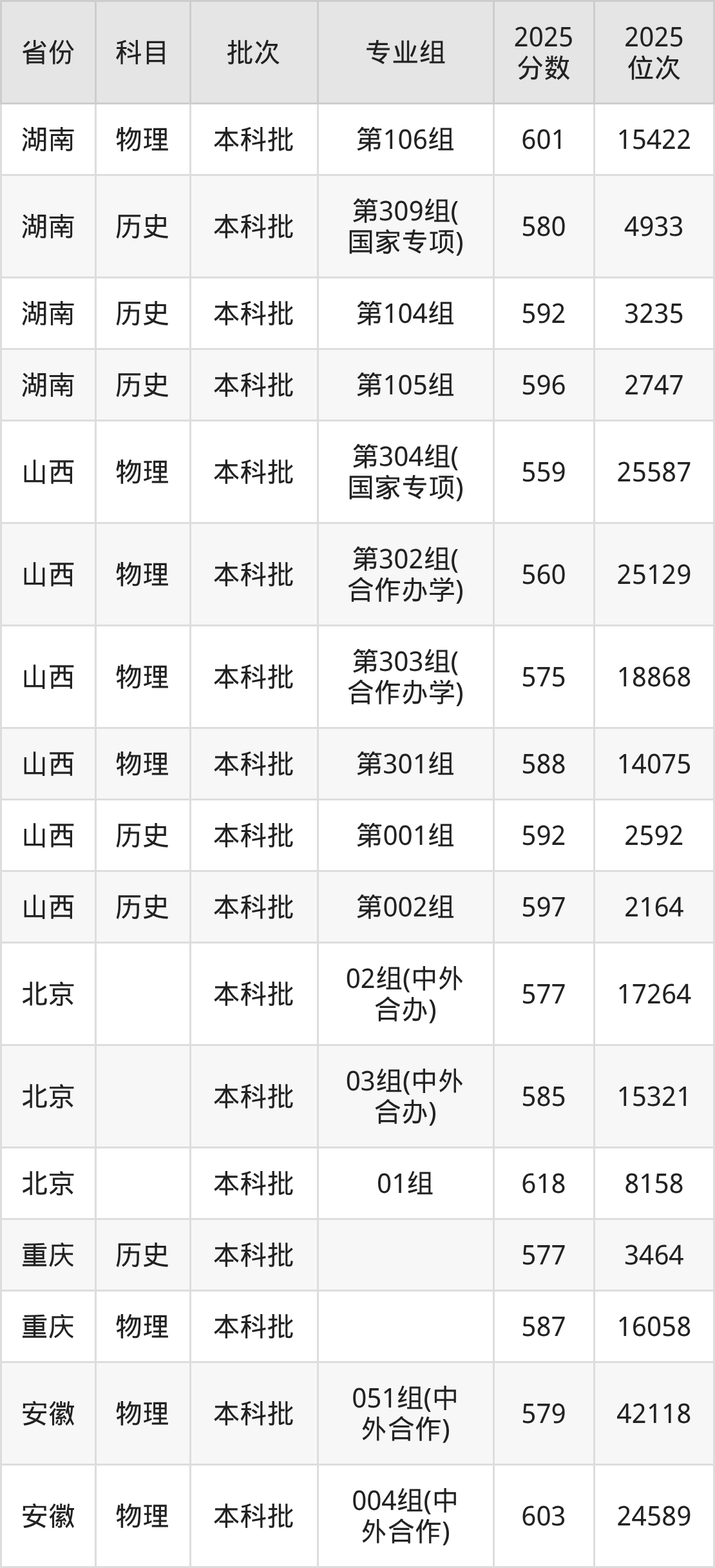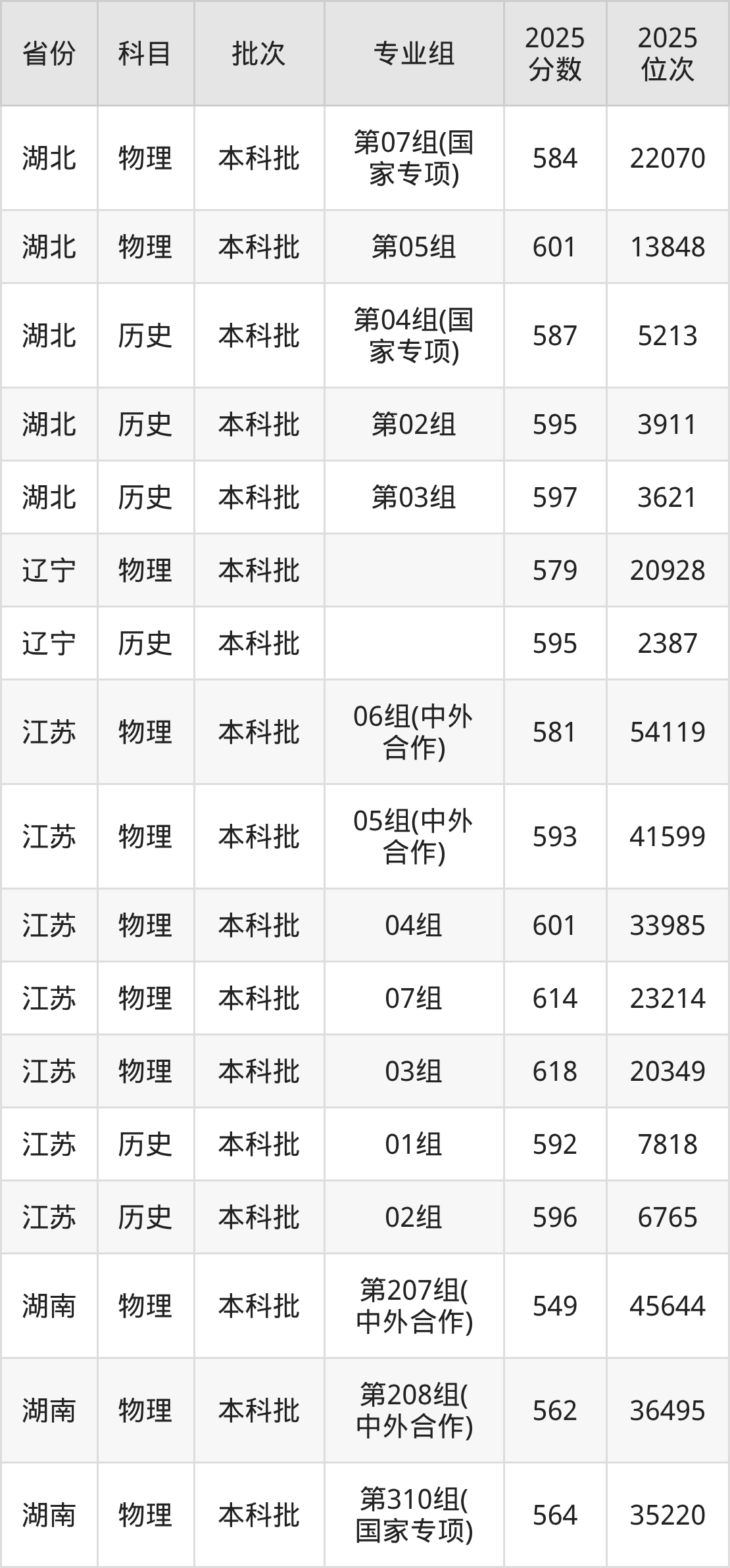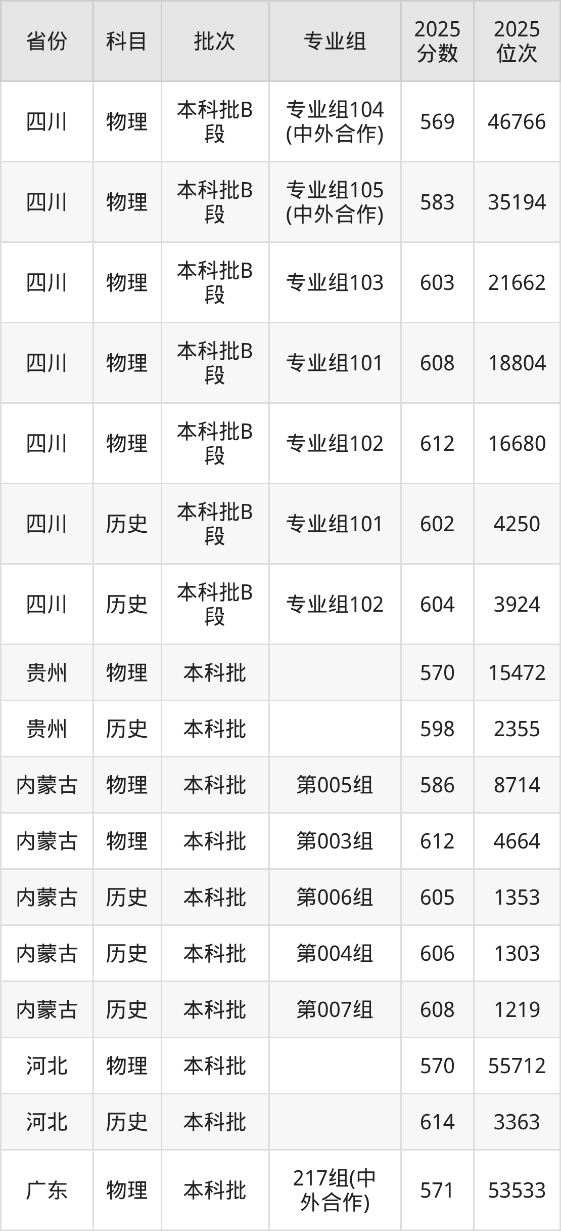 西南交通大学专业组105(中外合作):2025年投档录取最低分为583分,录取最低位次为35194名。