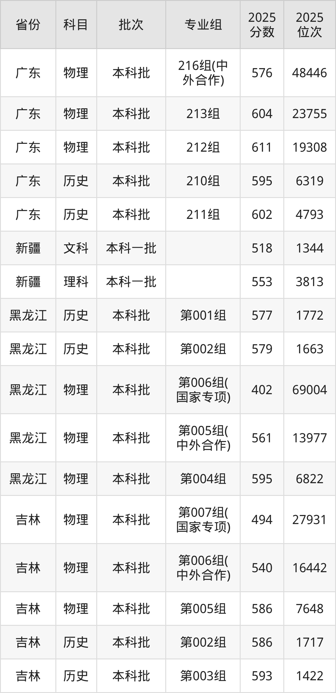 2025年西南交通大学全国录取分数线是402分到701分,录取最低在黑龙江物理类(第006组(国家专项))、录取最高在海南(专业组02)。各省各专业组最低分具有差异,详情如下: