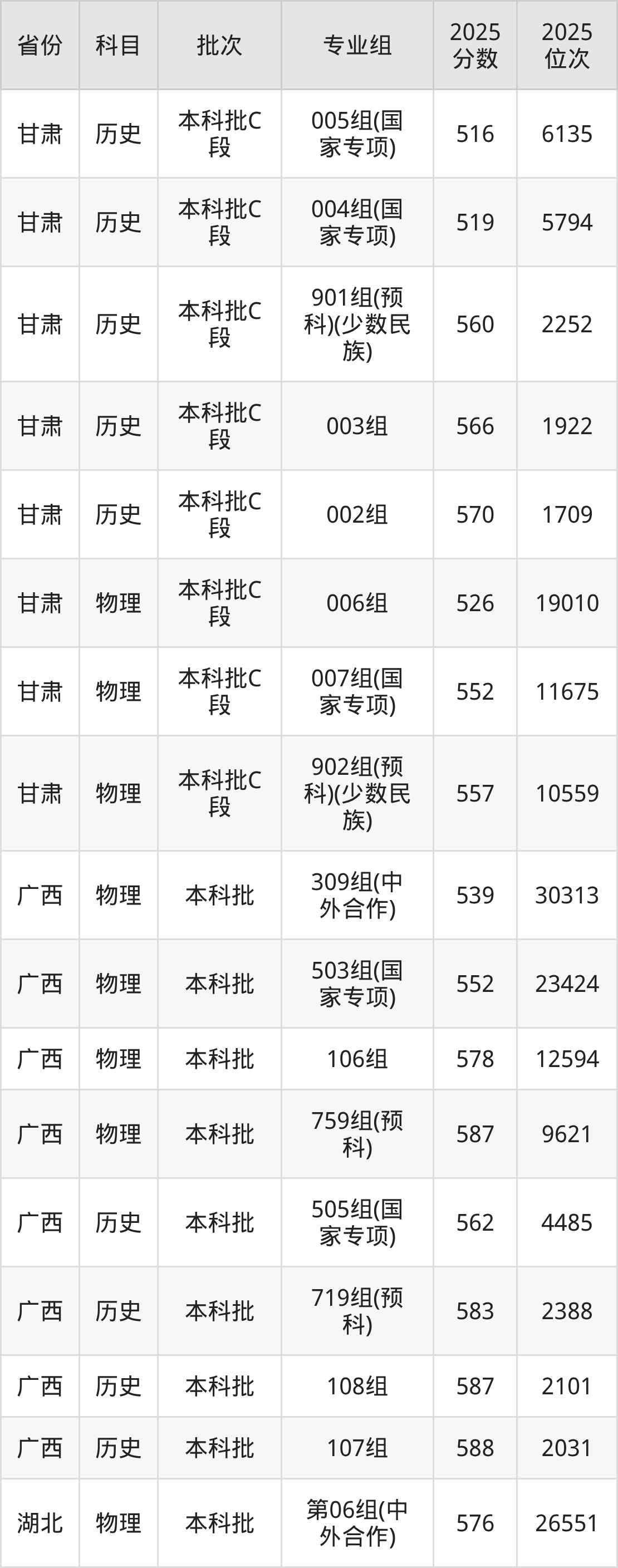 2025年投档录取最低分为570分,录取最低位次为15472名。