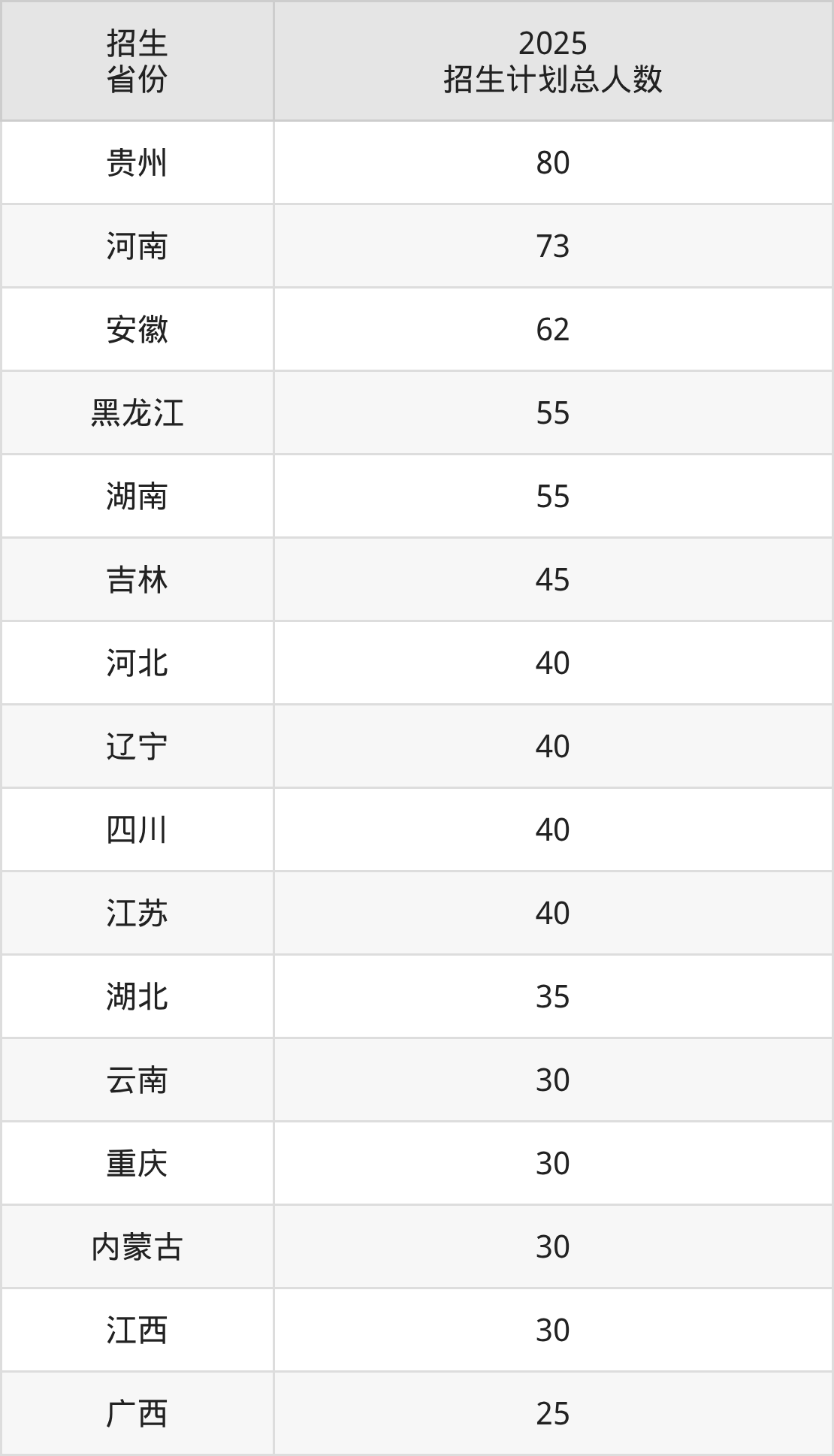 2025年济宁医学院面向全国27个省市开展本科招生;招生专业共32个,招生人数共823人。济宁医学院在各省具体招生人数情况如下表。
