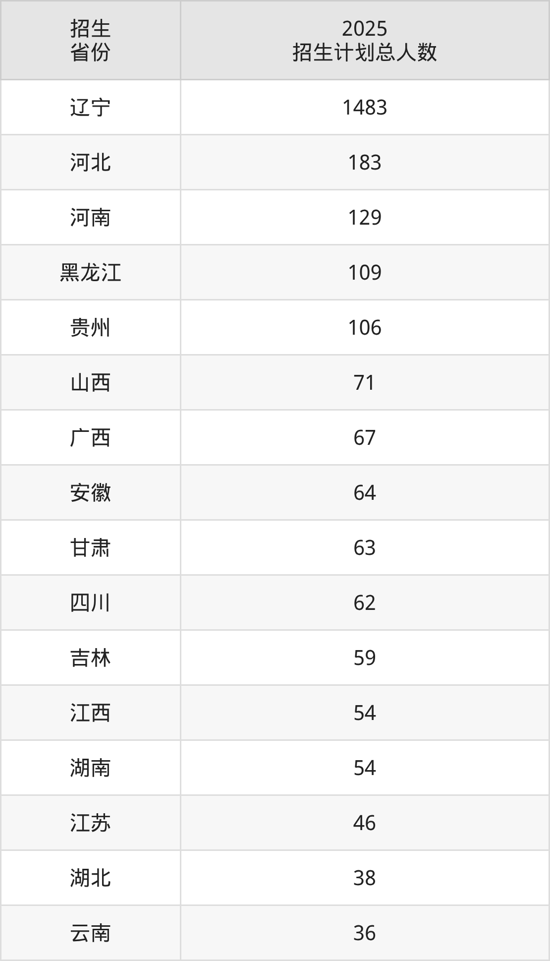 2025年大连工业大学面向全国24个省市开展本科招生;招生专业共33个,招生人数共2773人。2025年在辽宁省招生计划总人数是1483人,其中,大连工业大学在辽宁省招生人数最多的是计算机科学与技术。大连工业大学在各省具体招生人数情况如下表。