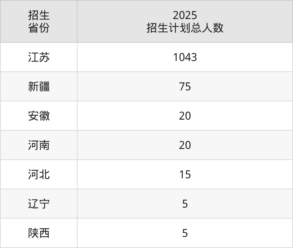 2025年常州信息职业技术学院面向全国7个省市开展专科招生;招生专业共28个,招生人数共1183人。2025年在江苏省招生计划总人数是1043人,其中,常州信息职业技术学院在江苏省招生人数最多的是软件技术。常州信息职业技术学院在各省具体招生人数情况如下表。