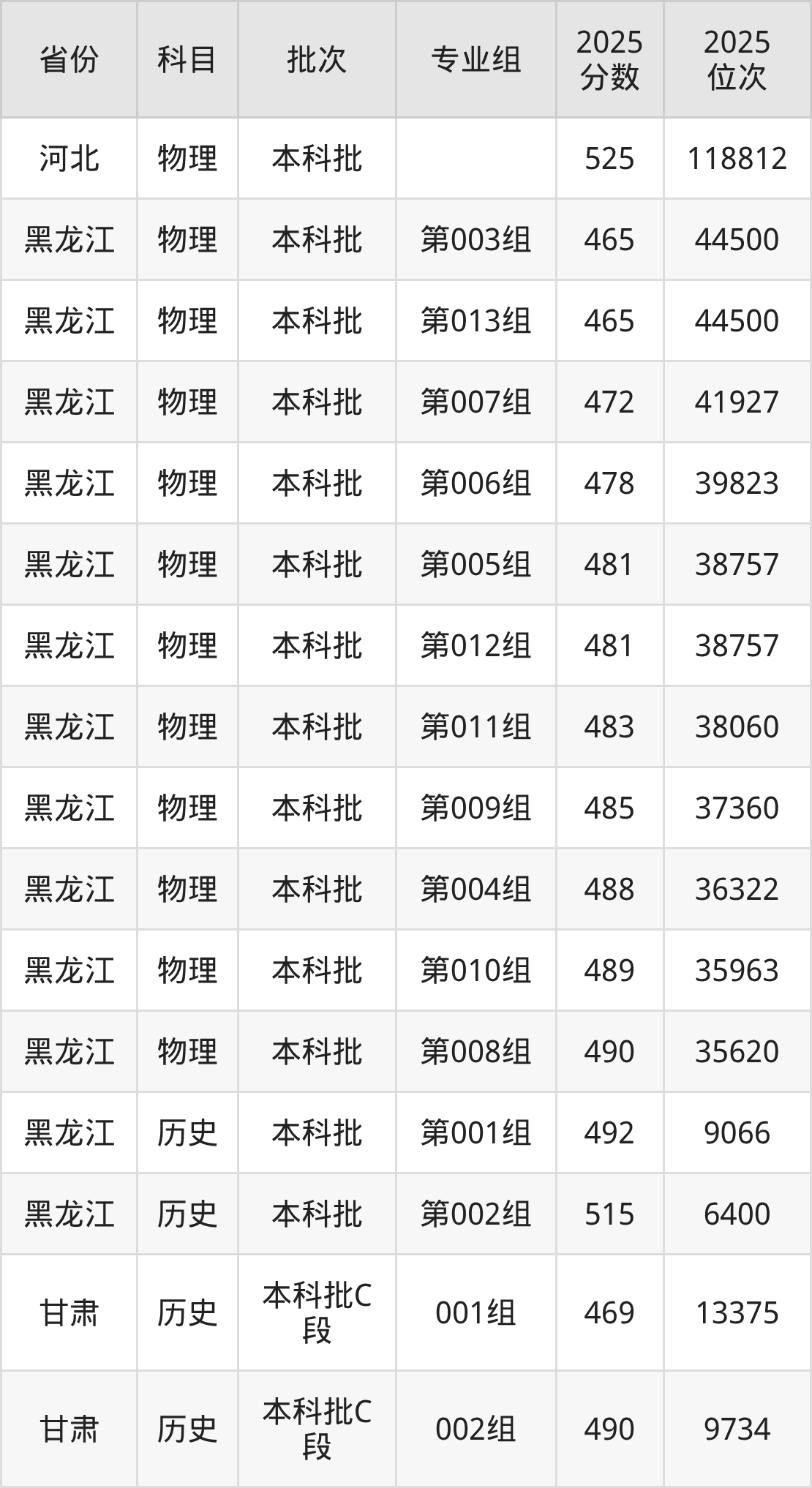 2025年投档录取最低分为481分,录取最低位次为66046名。