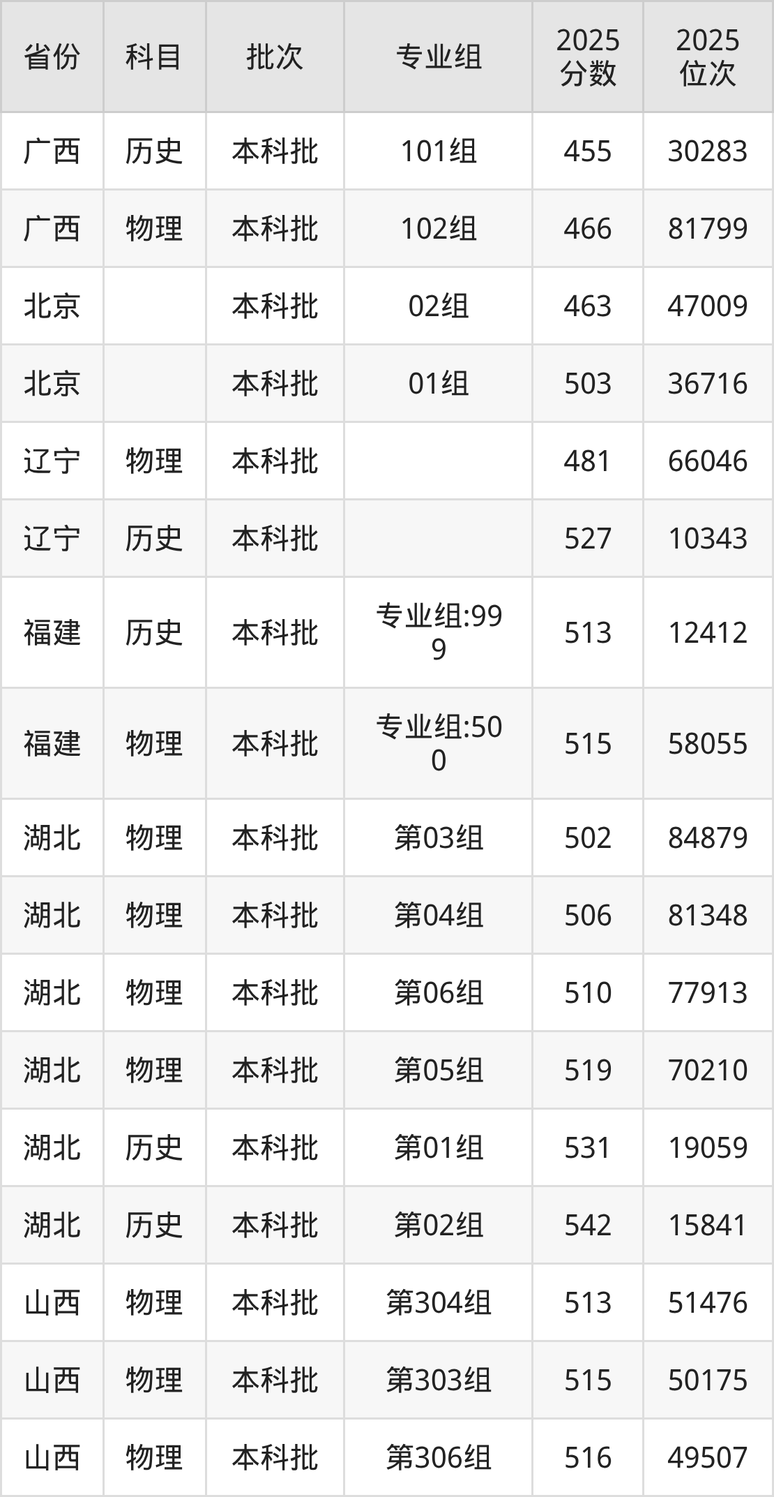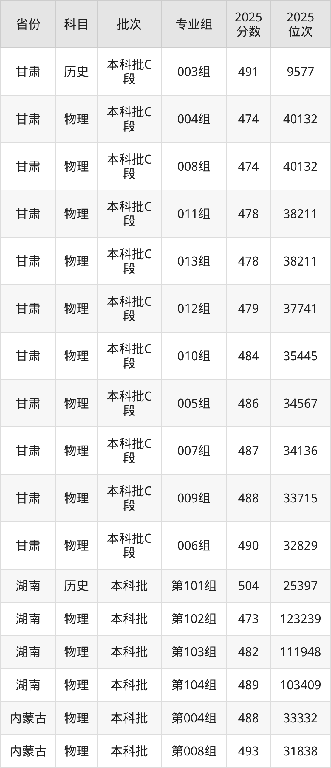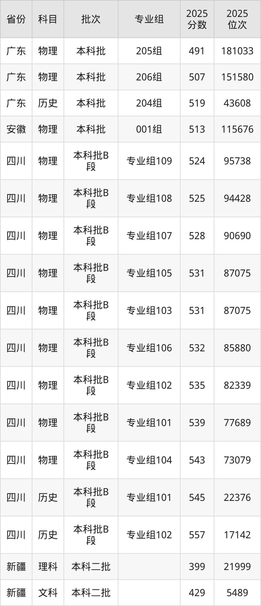 2025年投档录取最低分为429分,录取最低位次为5489名。