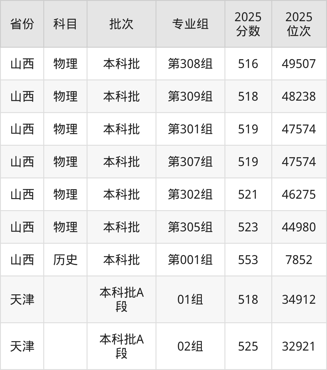 2025年投档录取最低分为527分,录取最低位次为10343名。