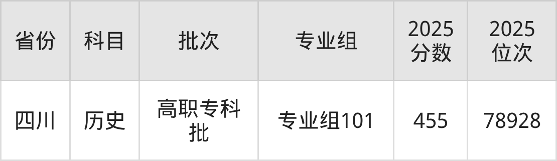 广州城市职业学院专业组101:2025年投档录取最低分为455分,录取最低位次为78928名。