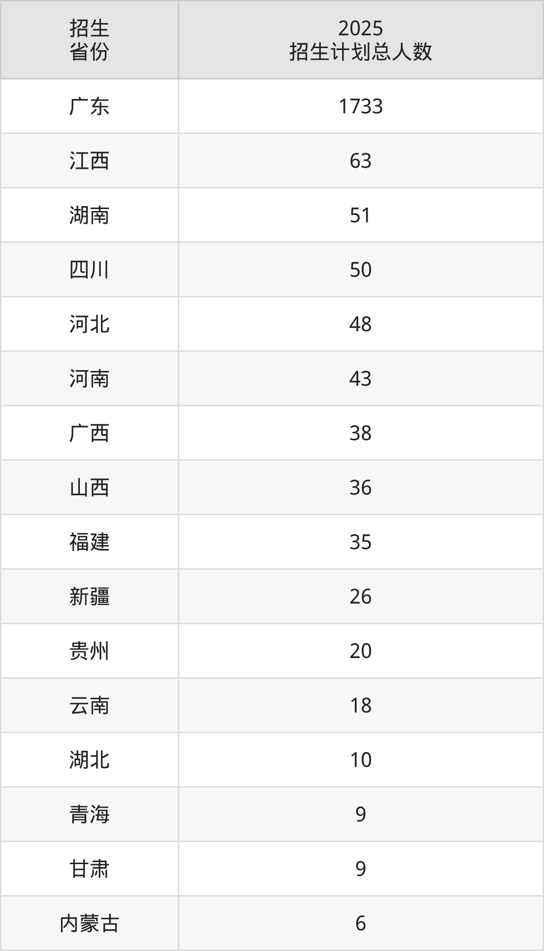 2025年广州城市职业学院面向全国16个省市开展专科招生;招生专业共42个,招生人数共2195人。2025年在广东省招生计划总人数是1733人,其中,广州城市职业学院在广东省招生人数最多的是市政管网智能检测与维护。广州城市职业学院在各省具体招生人数情况如下表。
