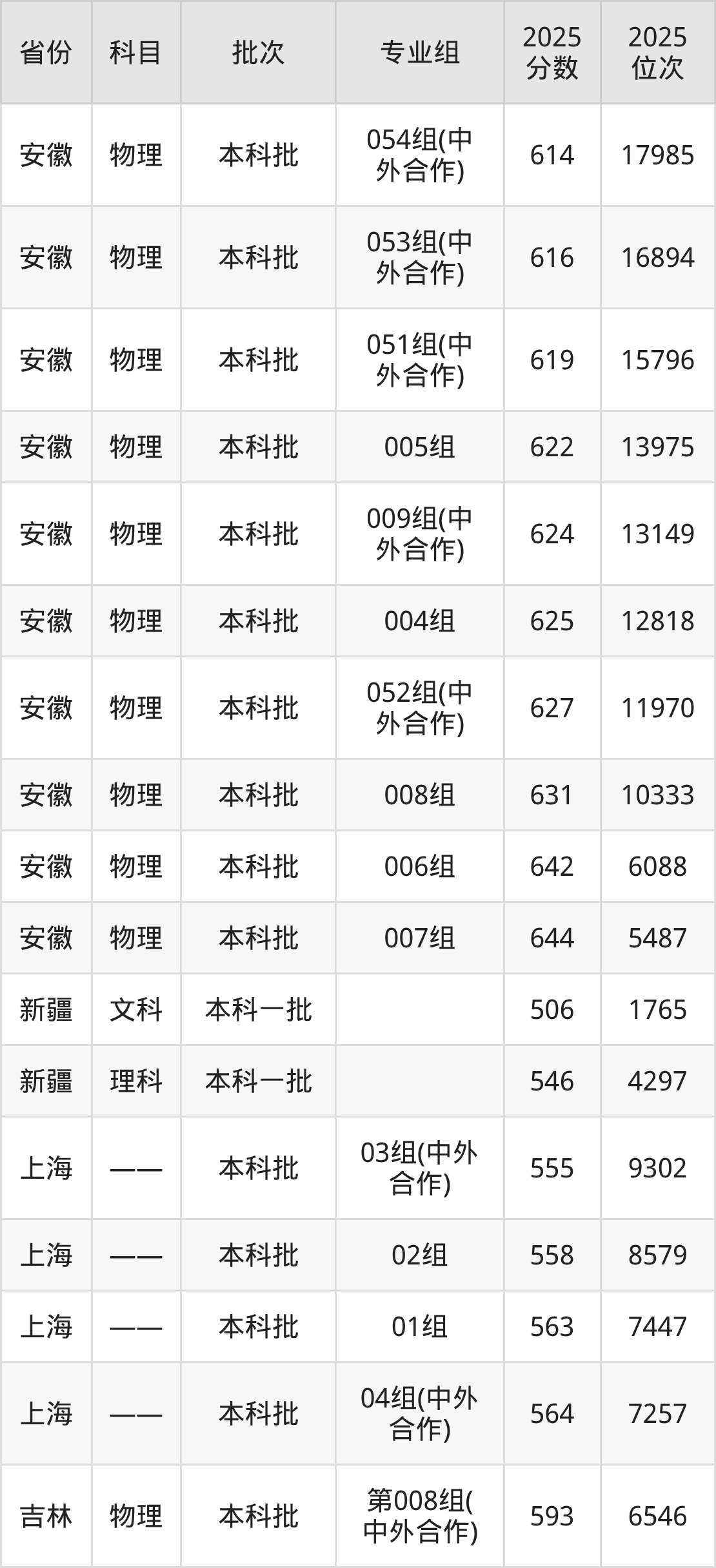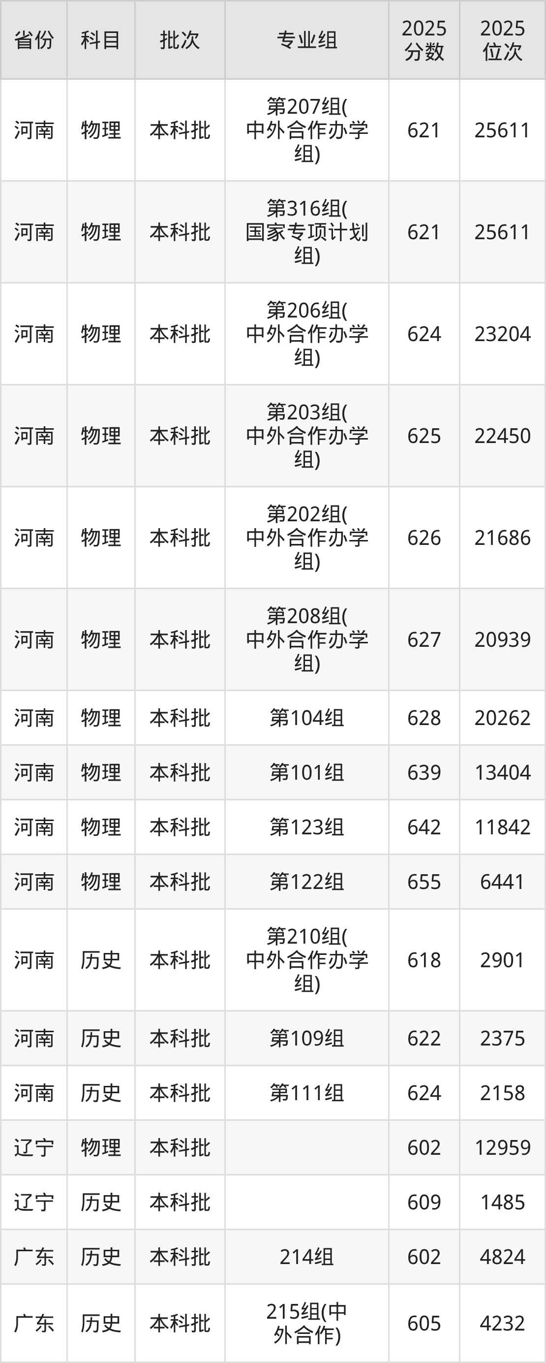 法学(中外合作办学)(与美国亚利桑那大学罗杰斯法学院合办)(“4+0”“2+2”“3+1”模式均可):2025年投档录取最低分为602分。