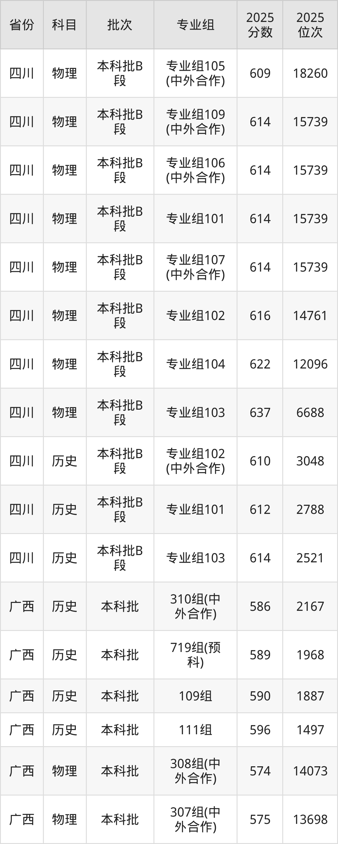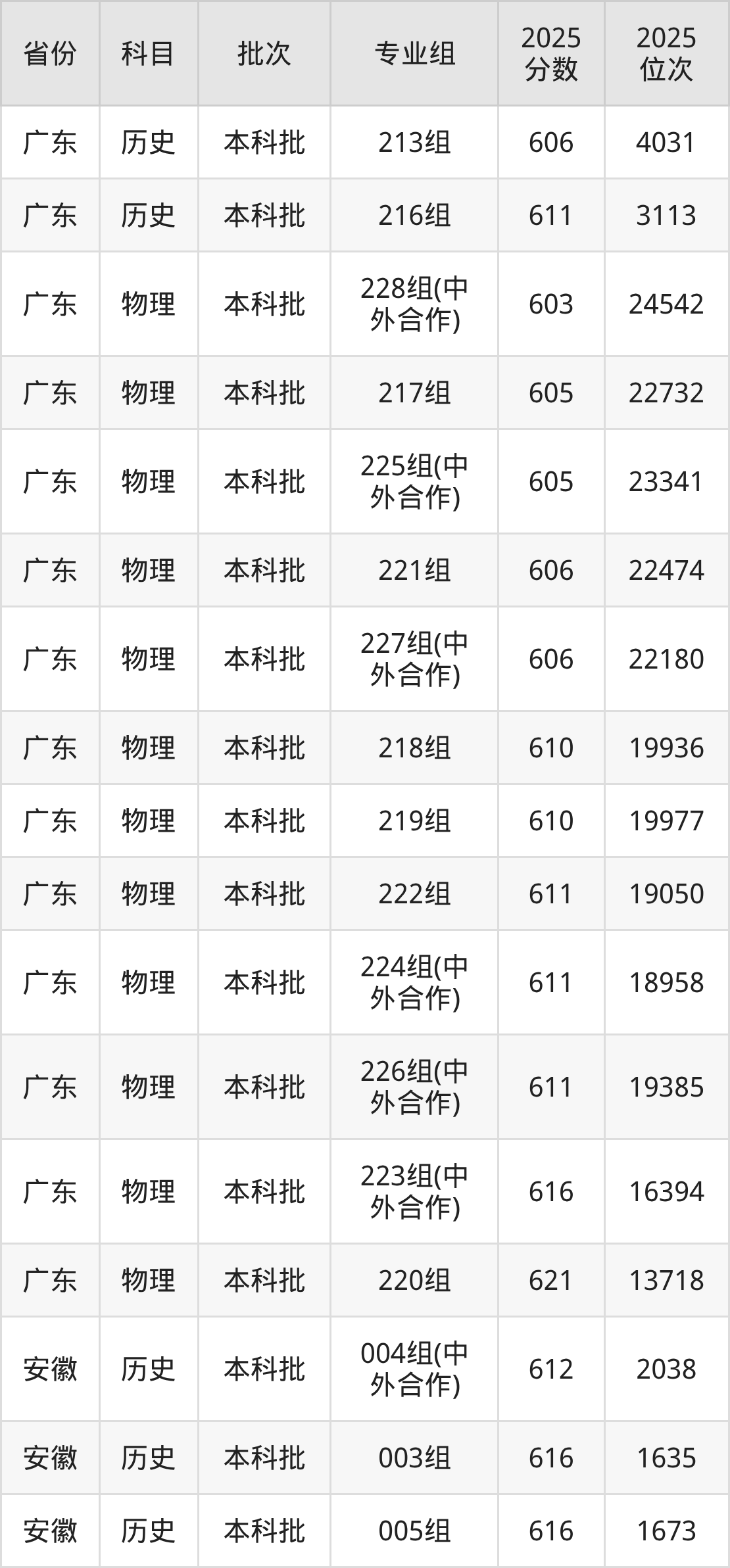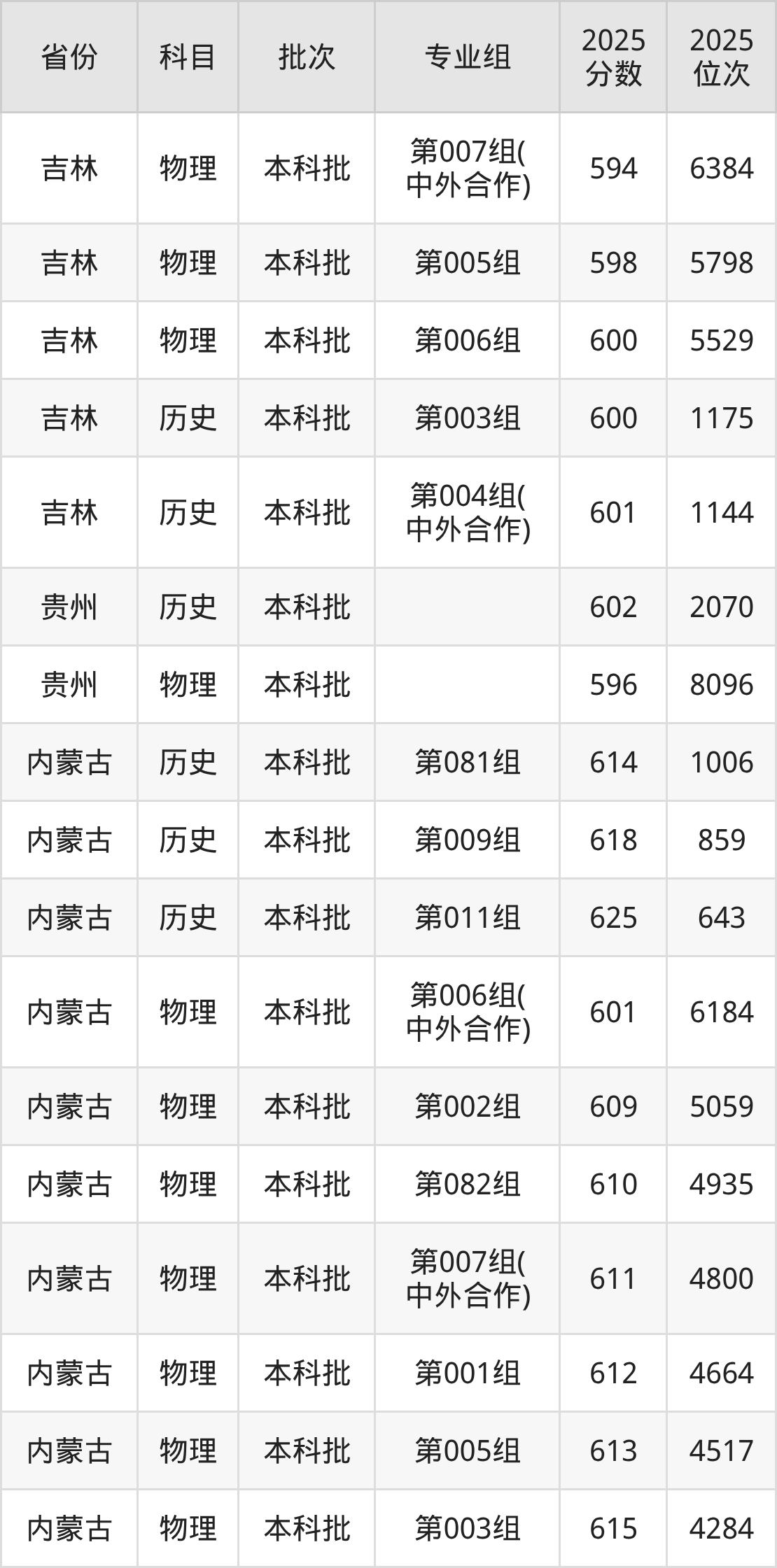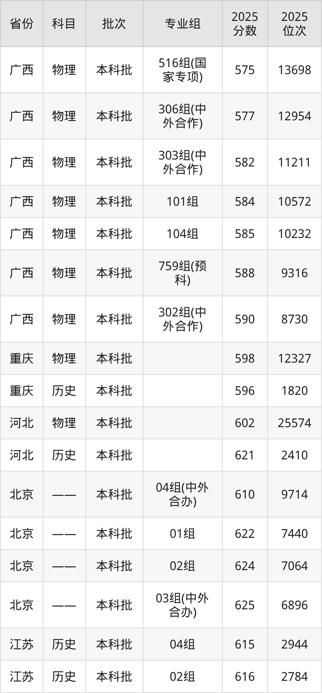 计算机科学与技术(中外合作办学)(与英国赫瑞瓦特大学合办)(“3+1”模式):2025年投档录取最低分为595分。