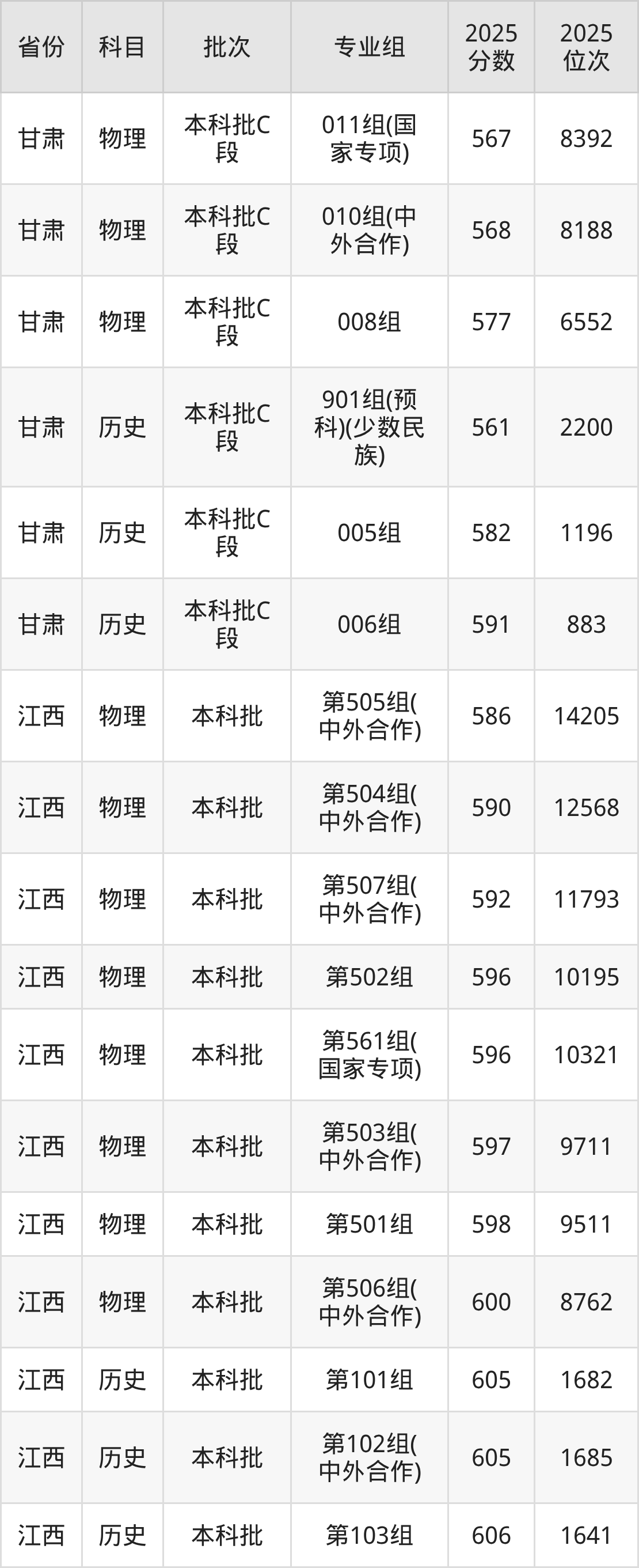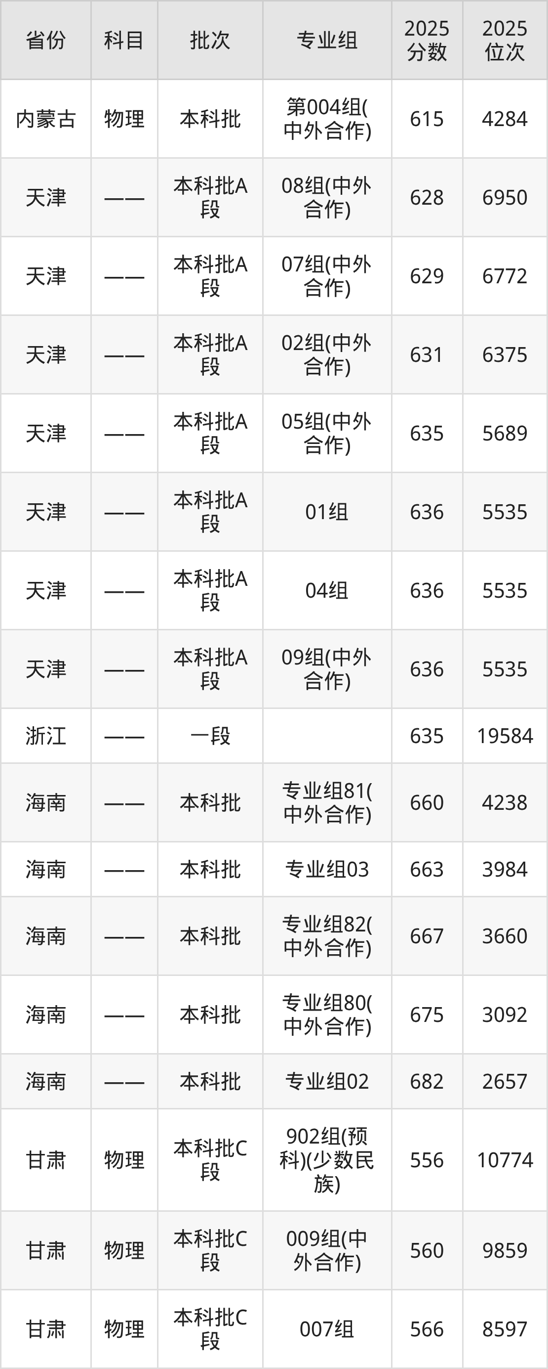 物理学(中外合作办学)(与英国赫瑞瓦特大学合办)(“3+1”模式):2025年投档录取最低分为582分。