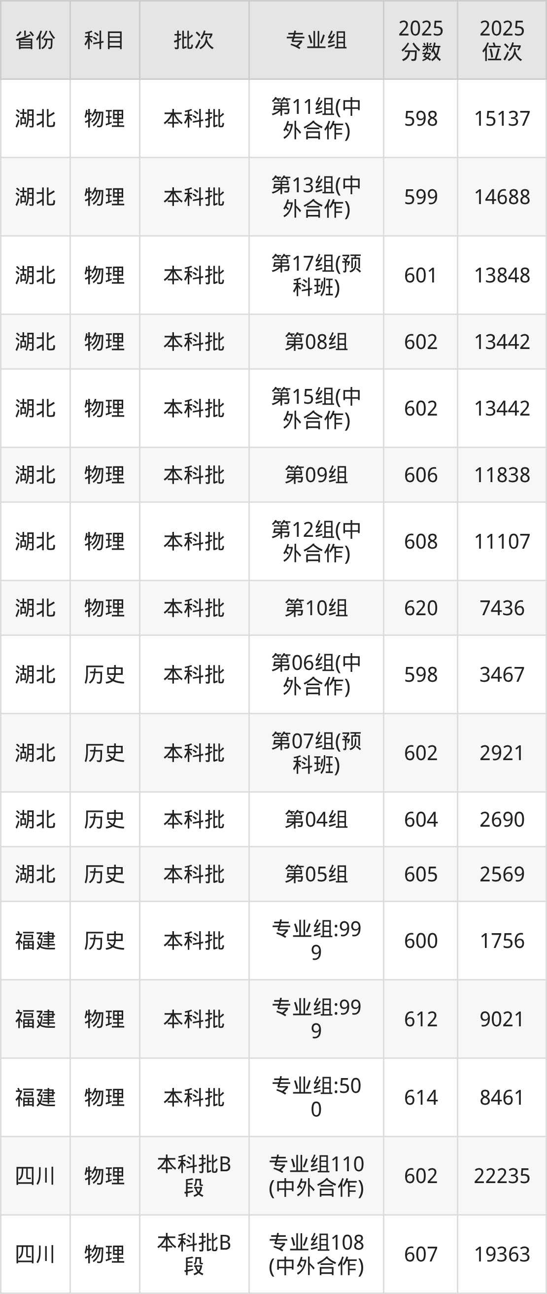 2025年投档录取最低分为598分,录取最低位次为12327名。