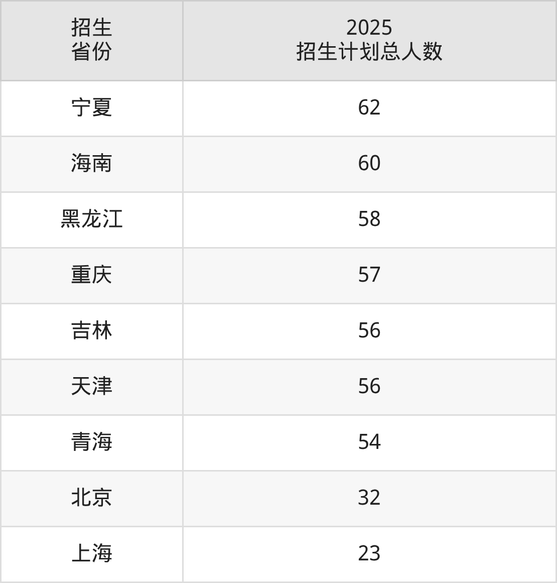 2025年中国海洋大学面向全国29个省市开展本科招生;招生专业共58个,招生人数共3889人。2025年在山东省招生计划总人数是1000人,其中,中国海洋大学在山东省招生人数最多的是法学。中国海洋大学在各省具体招生人数情况如下表。