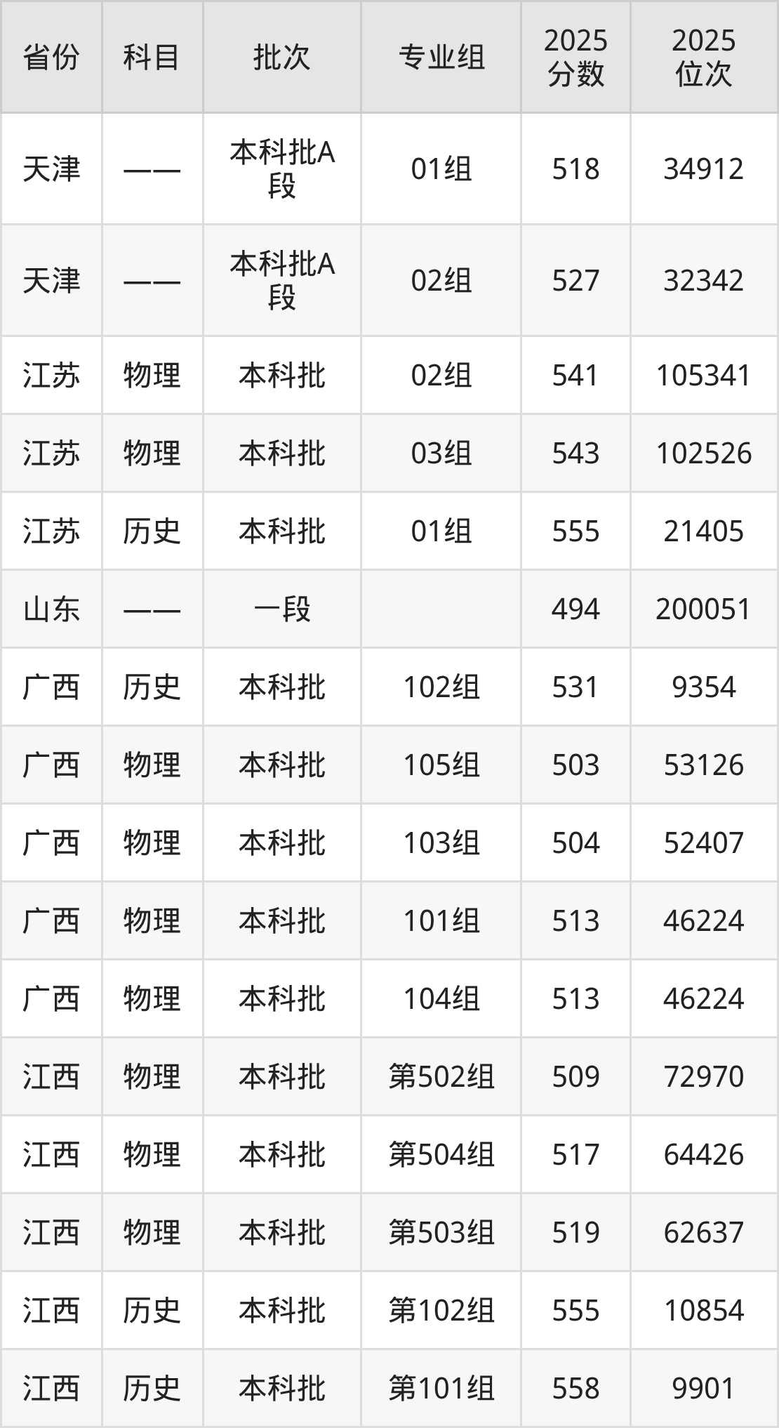 2025年投档录取最低分为436分,录取最低位次为16186名。