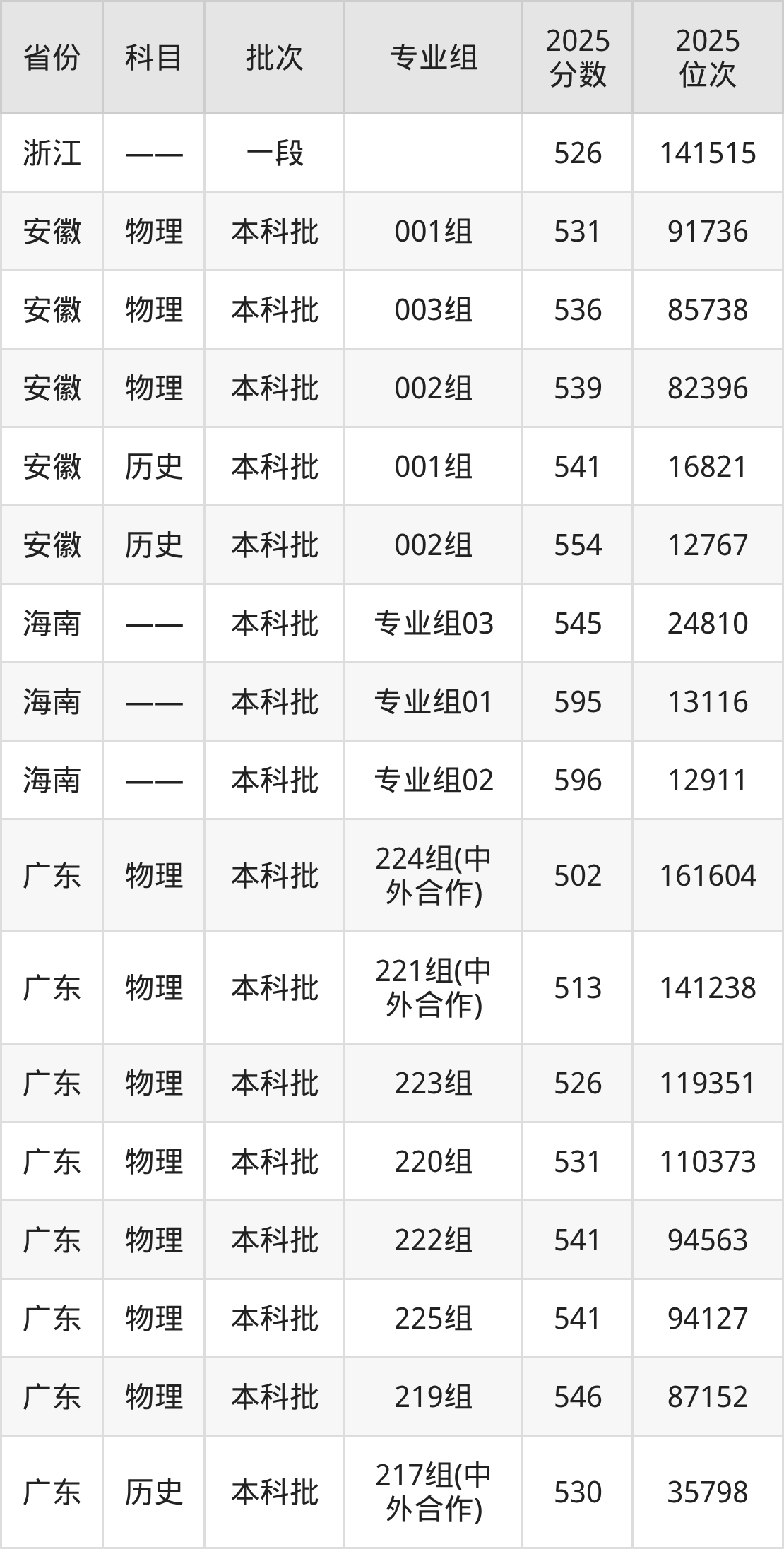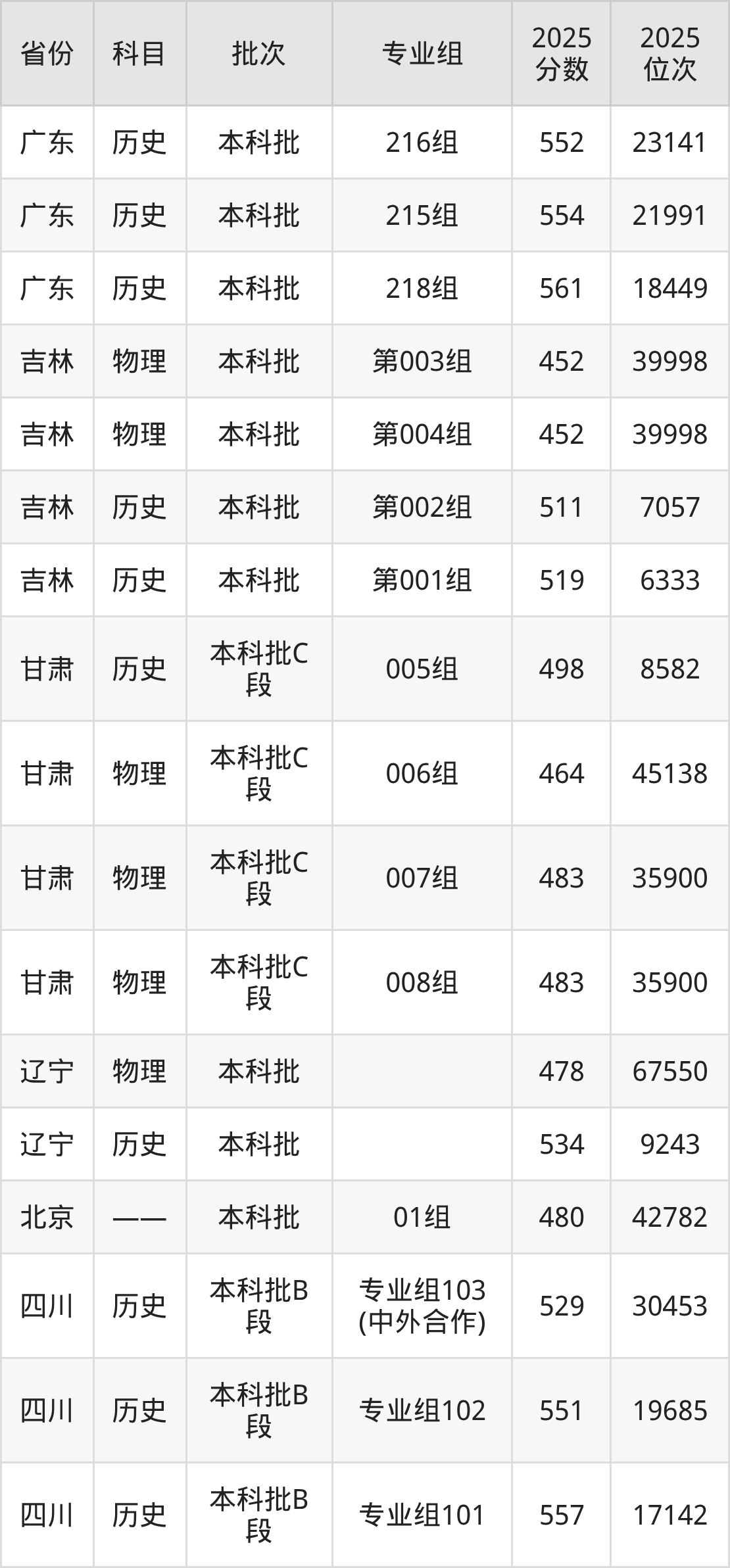 2025年投档录取最低分为554分,录取最低位次为20836名。