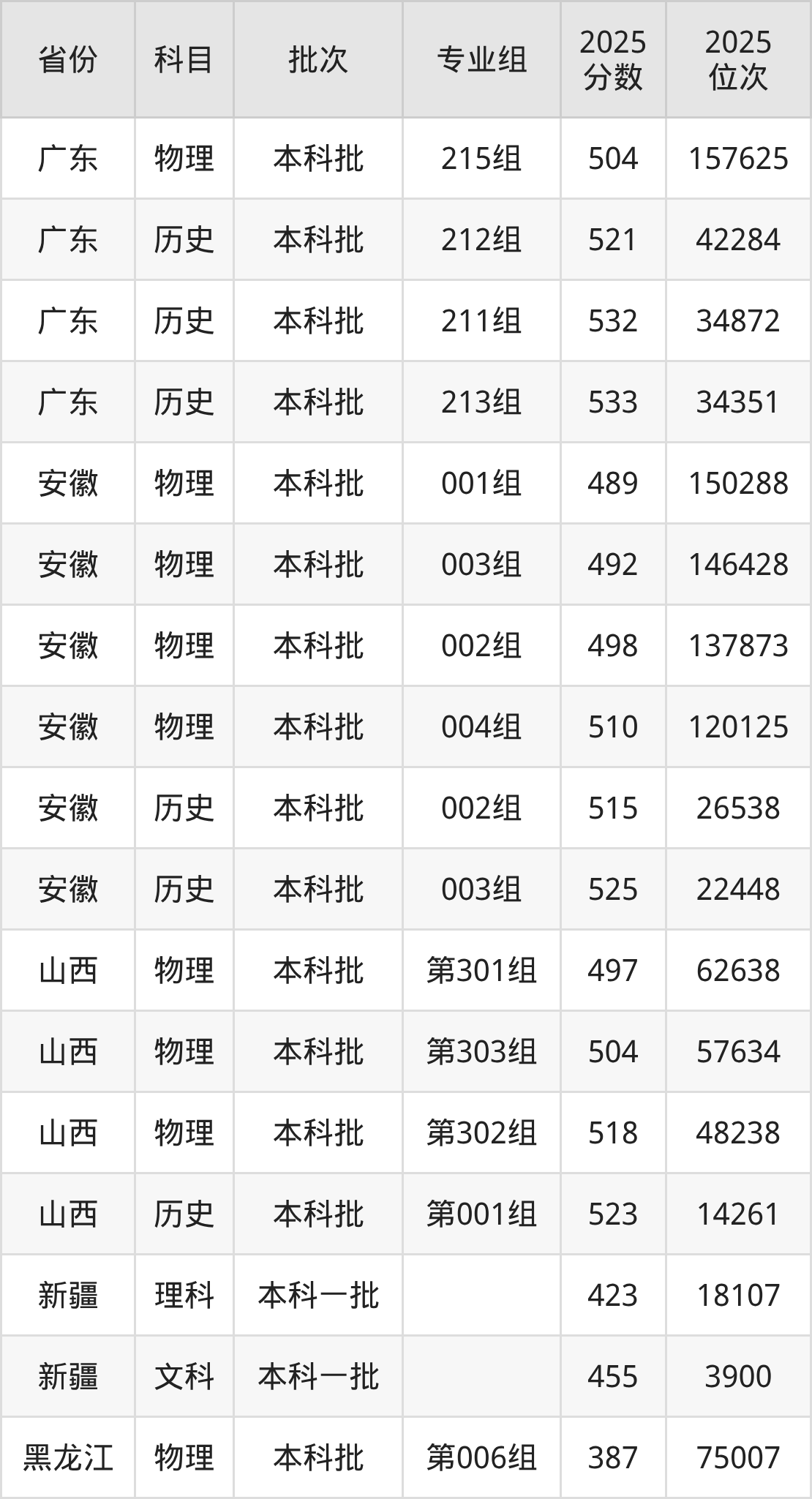 2025年投档录取最低分为452分,录取最低位次为80770名。