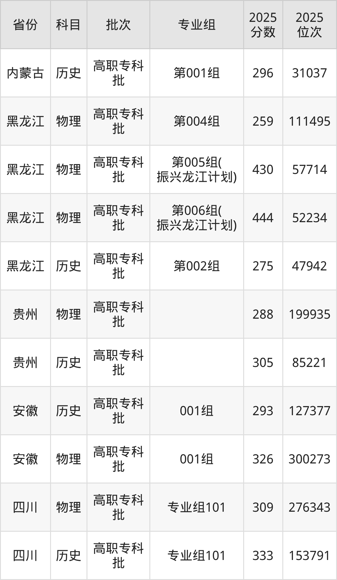 黑龙江林业职业技术学院第001组:2025年投档录取最低分为296分,录取最低位次为31037名。