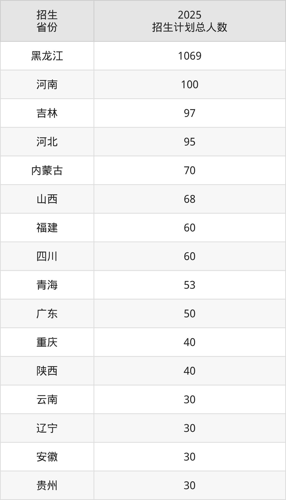 2025年黑龙江林业职业技术学院面向全国19个省市开展专科招生;招生专业共34个,招生人数共1972人。2025年在黑龙江省招生计划总人数是1069人,其中,黑龙江林业职业技术学院在黑龙江省招生人数最多的是家具设计与制造。黑龙江林业职业技术学院在各省具体招生人数情况如下表。