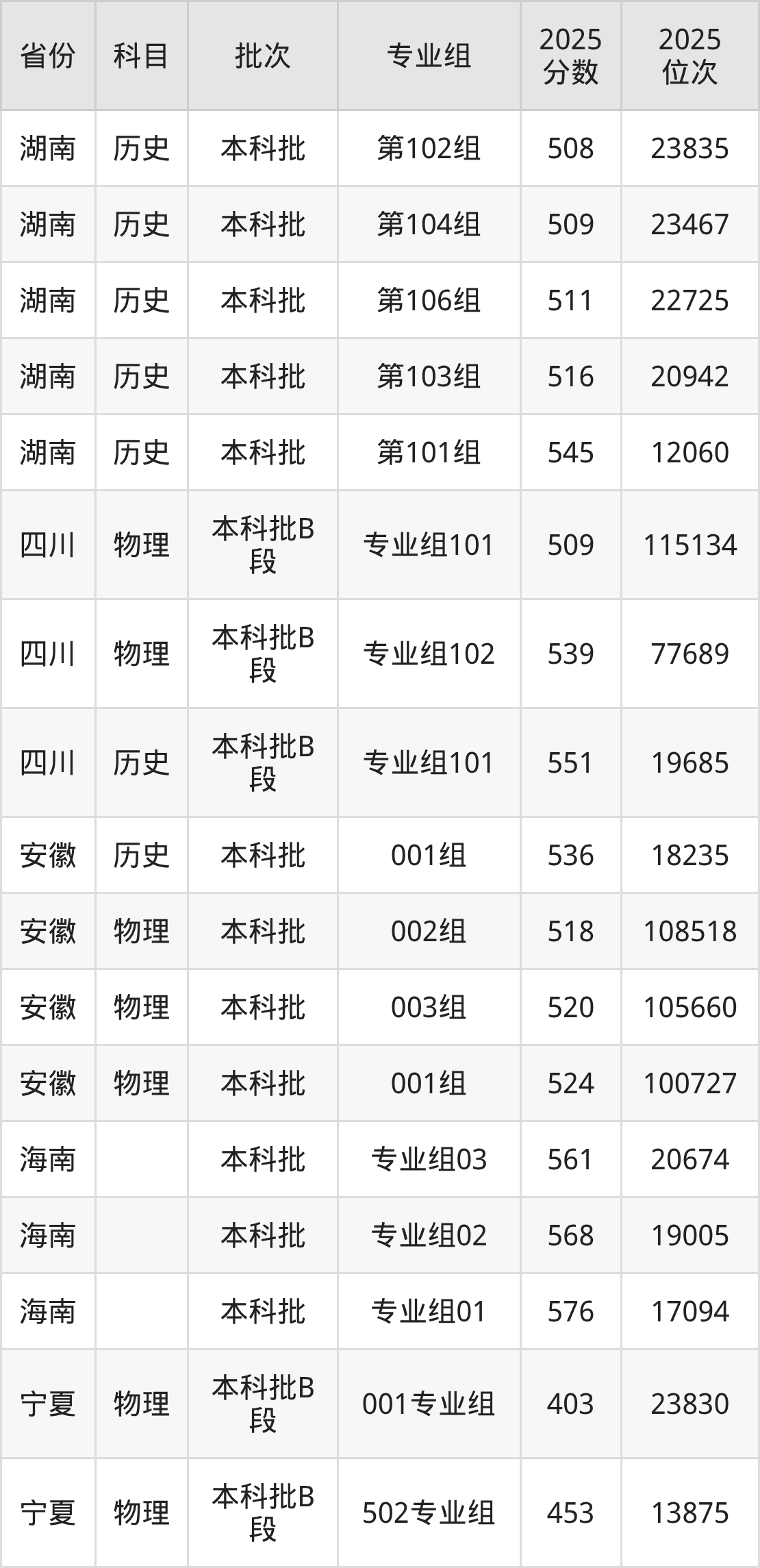 湖南财政经济学院001组:2025年投档录取最低分为536分,录取最低位次为18235名。