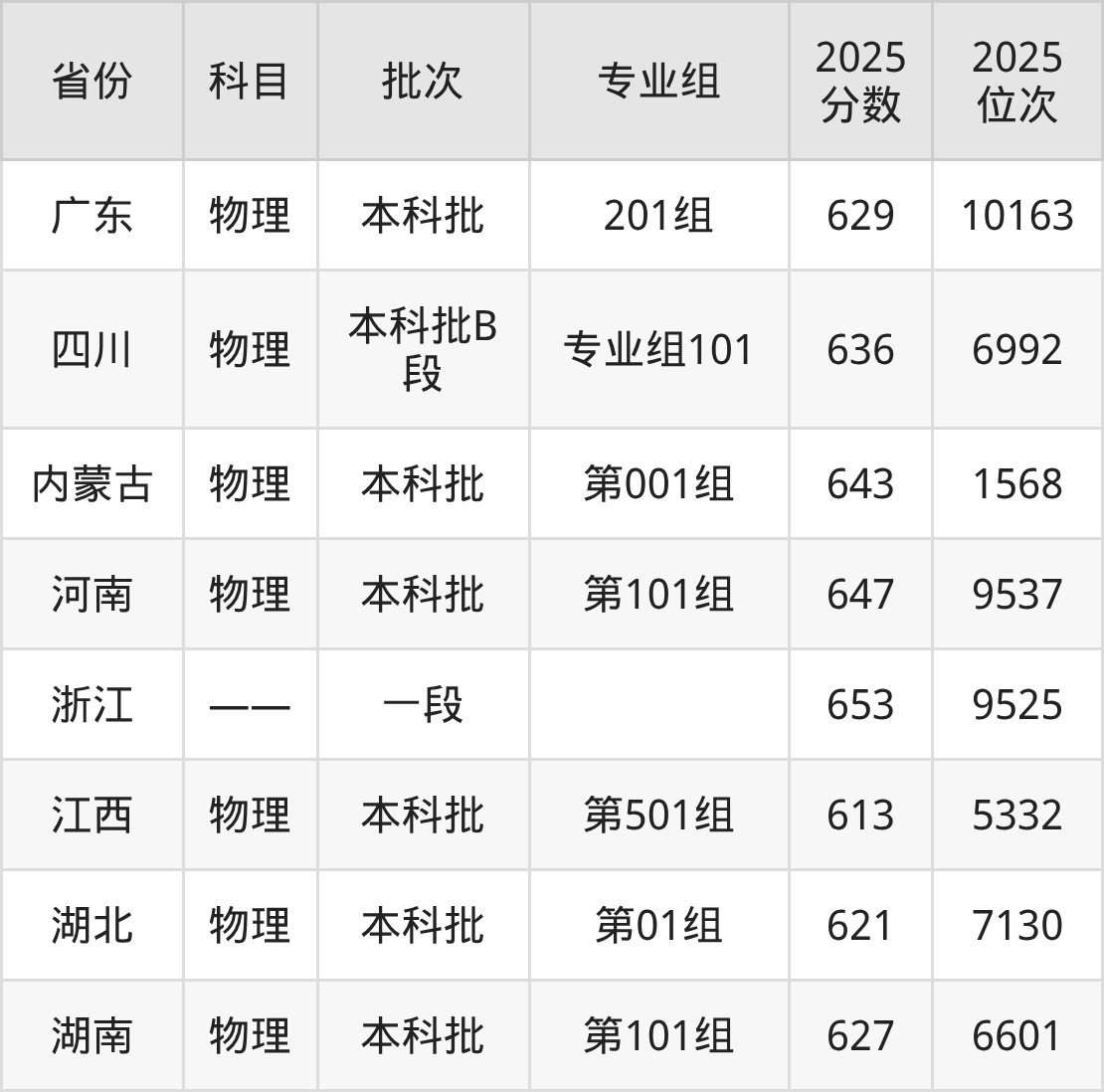 本科物理类投档录取最低647分