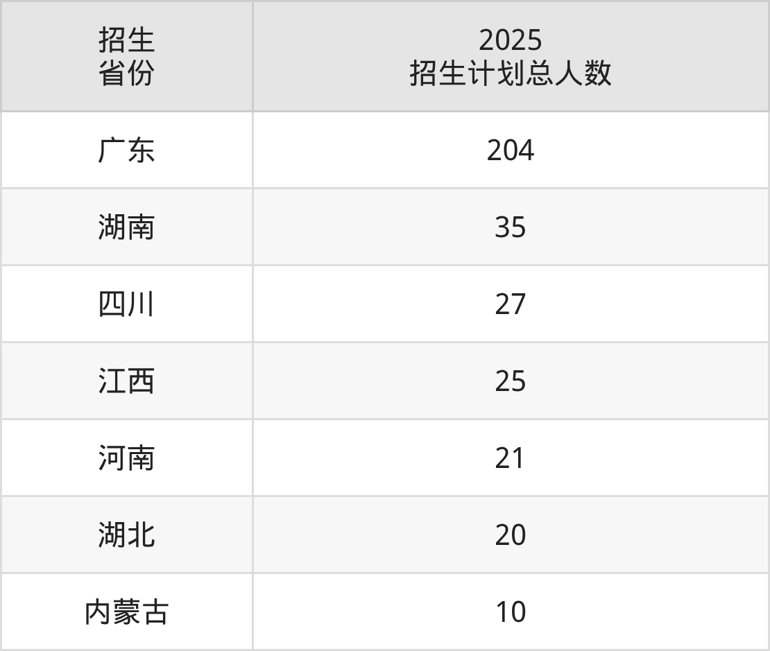 2025年深圳理工大学面向全国7个省市开展本科招生;招生专业共1个,招生人数共342人。2025年在广东省招生计划总人数是204人,其中,深圳理工大学在广东省招生人数最多的是计算机科学与技术。深圳理工大学在各省具体招生人数情况如下表。