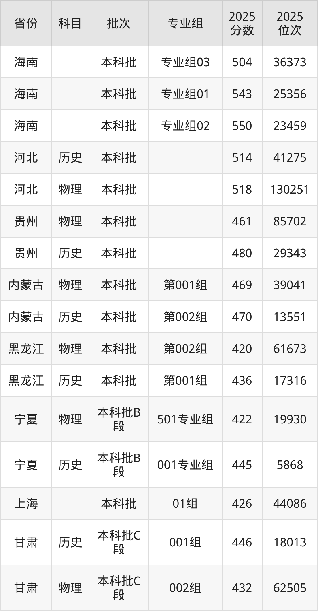 电子科技大学成都学院001组:2025年投档录取最低分为506分,录取最低位次为125928名。