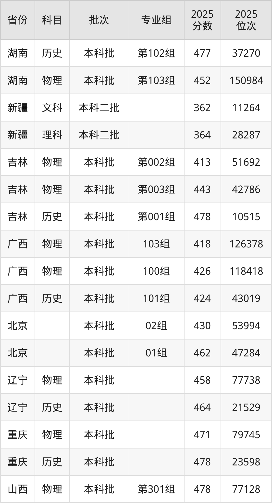 普通类本科物理类最低458分,本科历史类最低464分