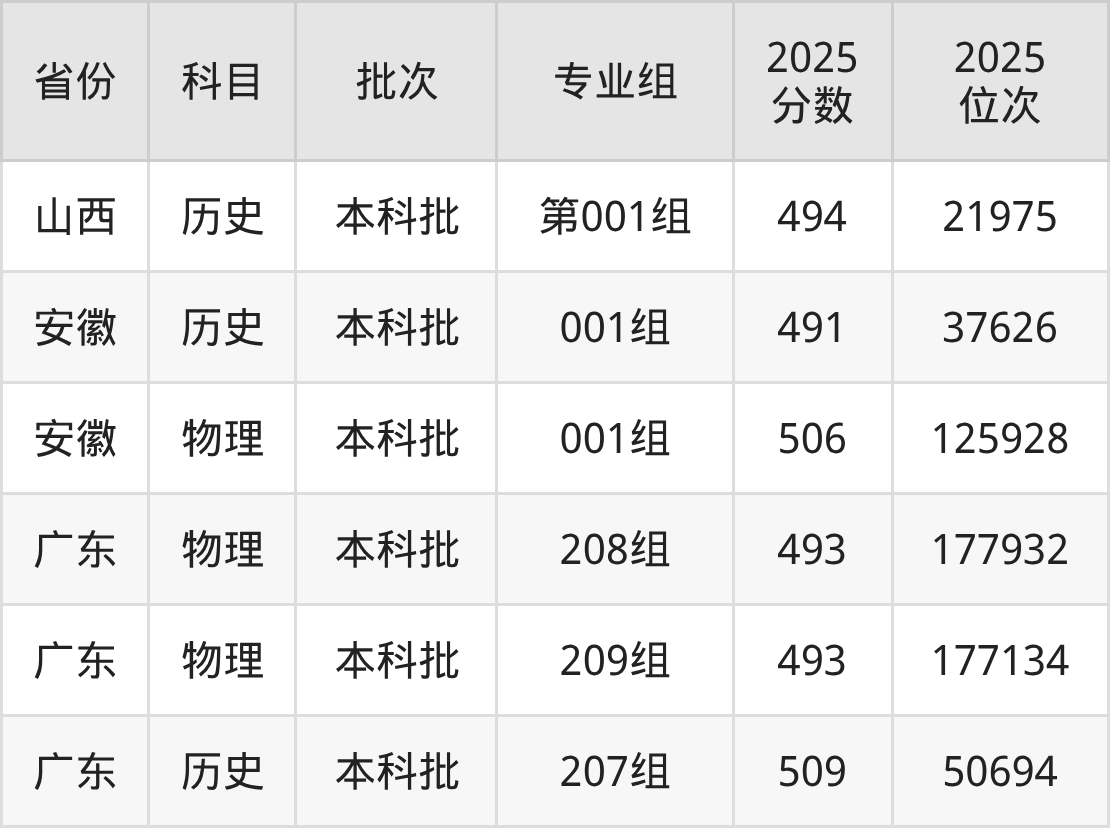 电子科技大学成都学院001组:2025年投档录取最低分为491分,录取最低位次为37626名。