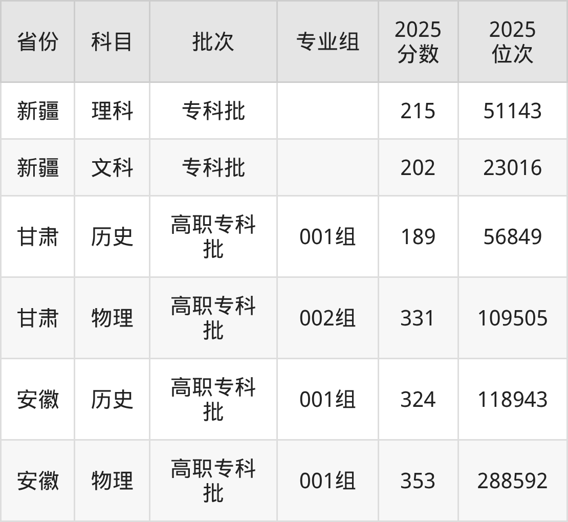 临沂职业学院2025招生录取分数线已公布,2025年临沂职业学院在安徽省专科历史类投档录取最低分324分。在甘肃省专科物理类投档录取最低分331分,更多省份具体录取分数线详见下文。