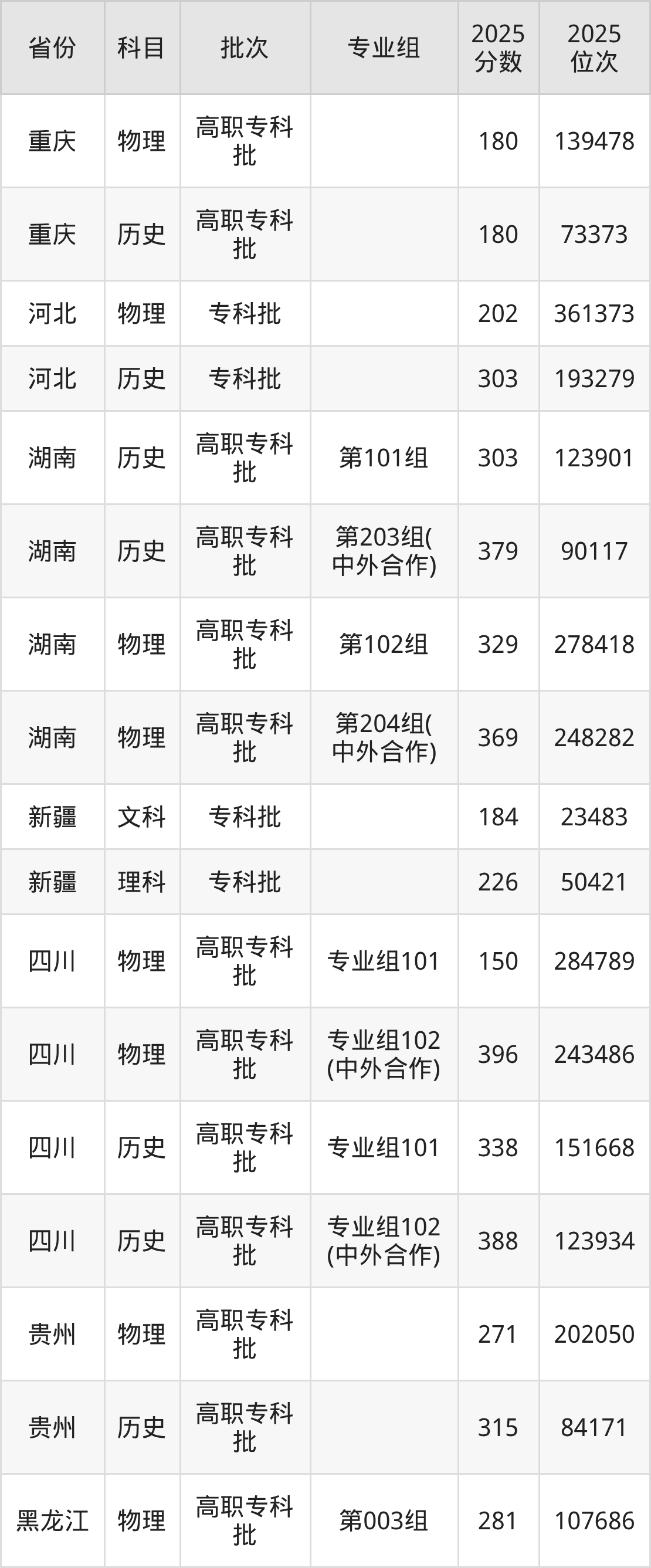 2025年投档录取最低分为184分,录取最低位次为23483名。
