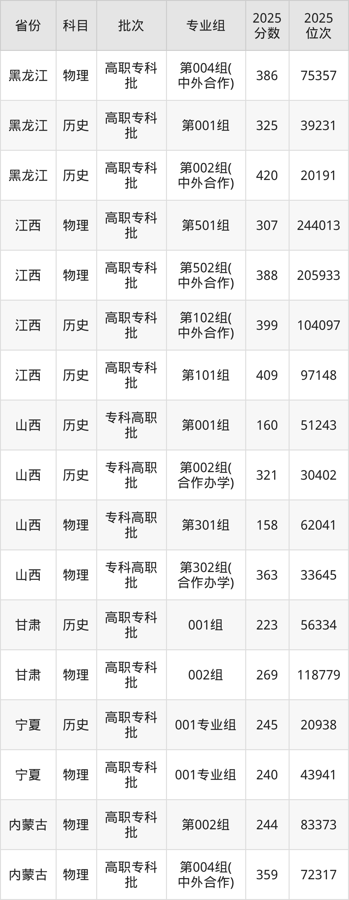 石家庄医学高等专科学校第004组(中外合作):2025年投档录取最低分为359分,录取最低位次为72317名。