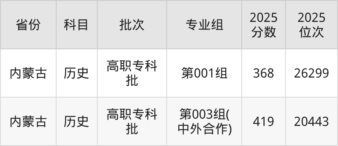 石家庄医学高等专科学校第003组(中外合作):2025年投档录取最低分为419分,录取最低位次为20443名。