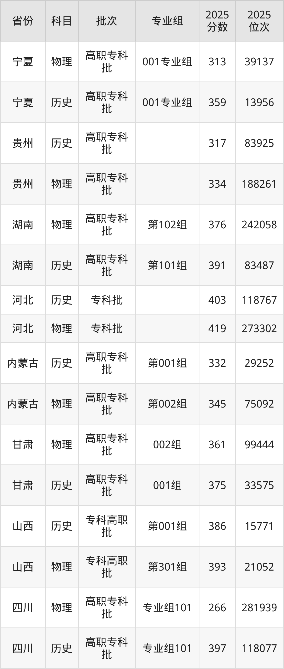 下面是2025年陕西职业技术学院全国录取分数线一览表,请查阅。
