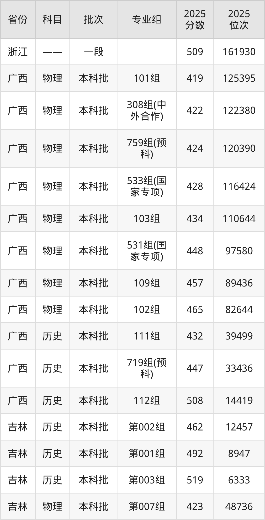 北方民族大学第08组(中外合作):2025年投档录取最低分为490分,录取最低位次为95344名。