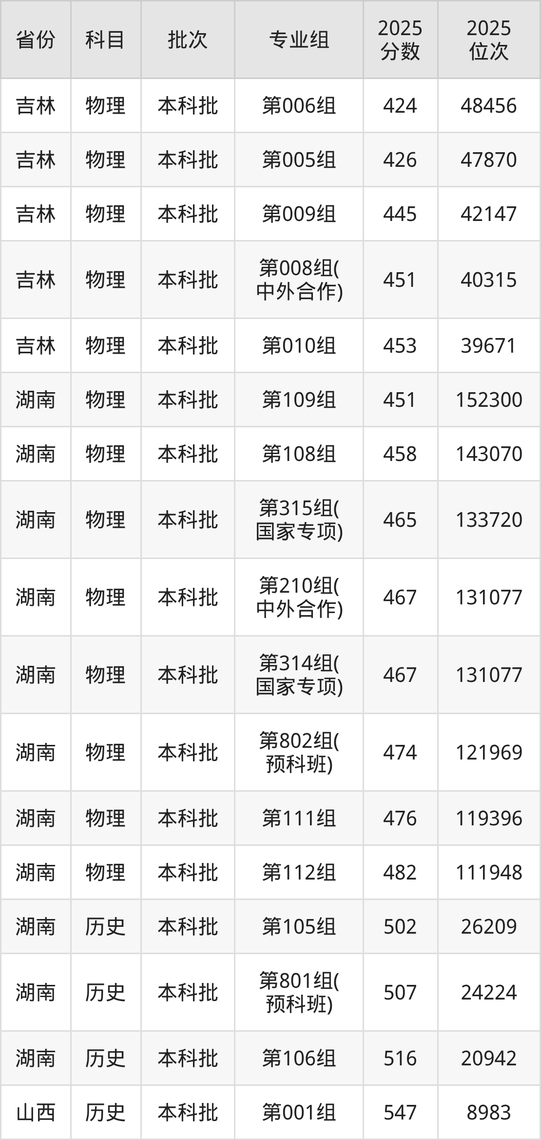 北方民族大学第503组(中外合作):2025年投档录取最低分为503分,录取最低位次为79874名。