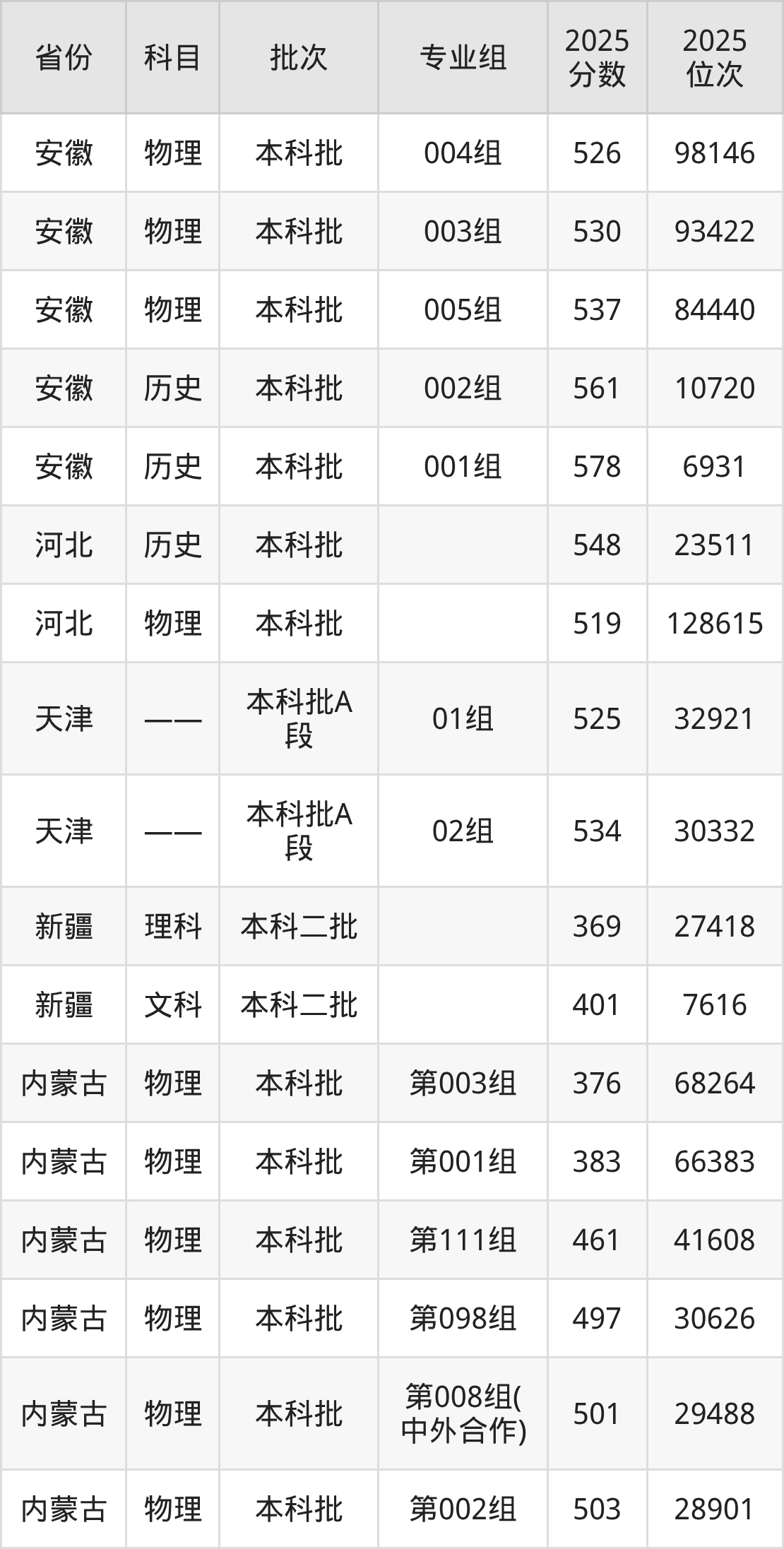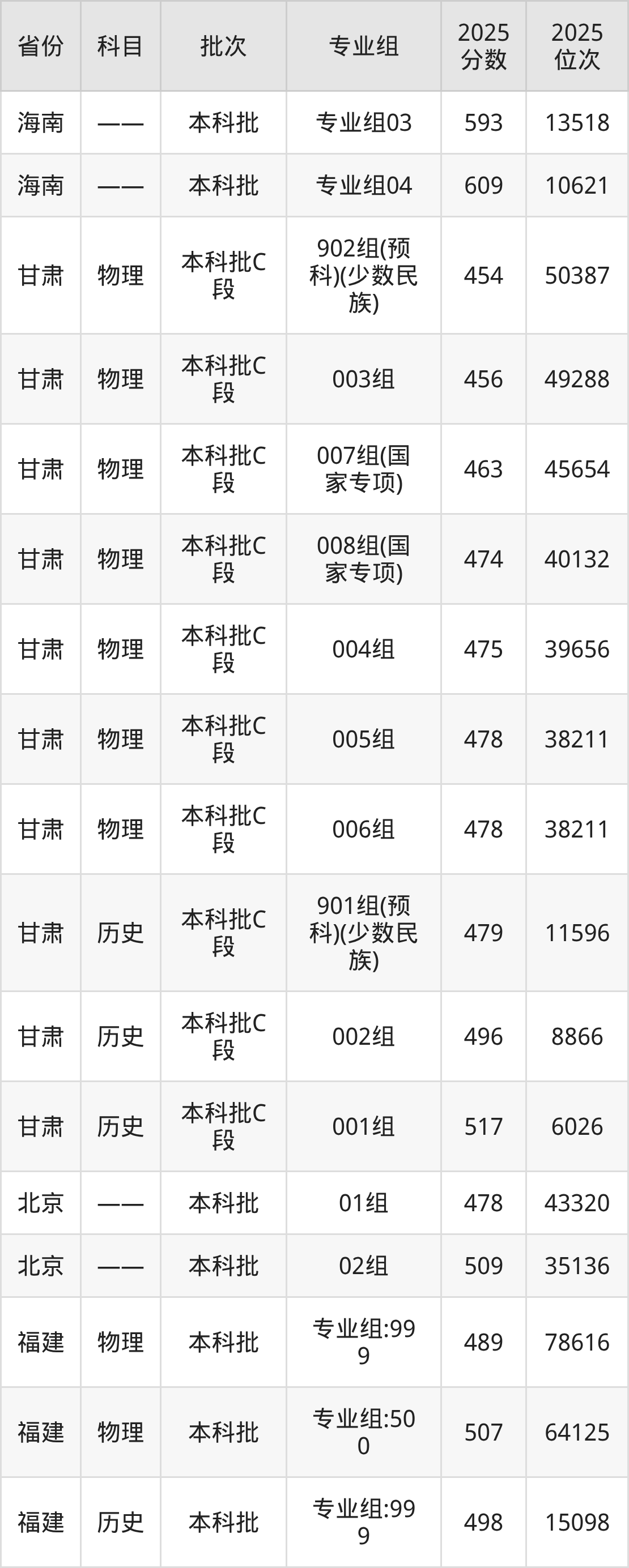 北方民族大学001专业组:2025年投档录取最低分为517分,录取最低位次为6026名。