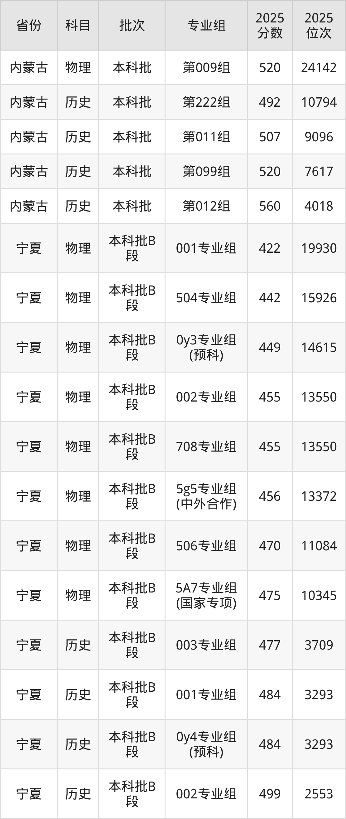 北方民族大学第002组:2025年投档录取最低分为515分,录取最低位次为6400名。