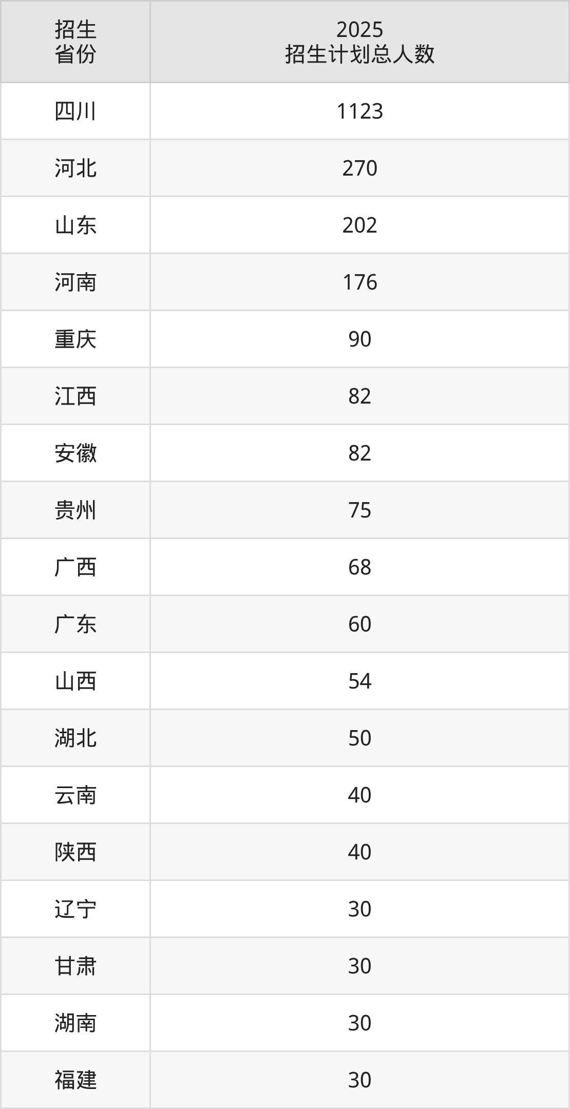 2025年四川长江职业学院面向全国18个省市开展专科招生;招生专业共51个,招生人数共2532人。2025年在四川省招生计划总人数是1123人,其中,四川长江职业学院在四川省招生人数最多的是航空物流管理。四川长江职业学院在各省具体招生人数情况如下表。